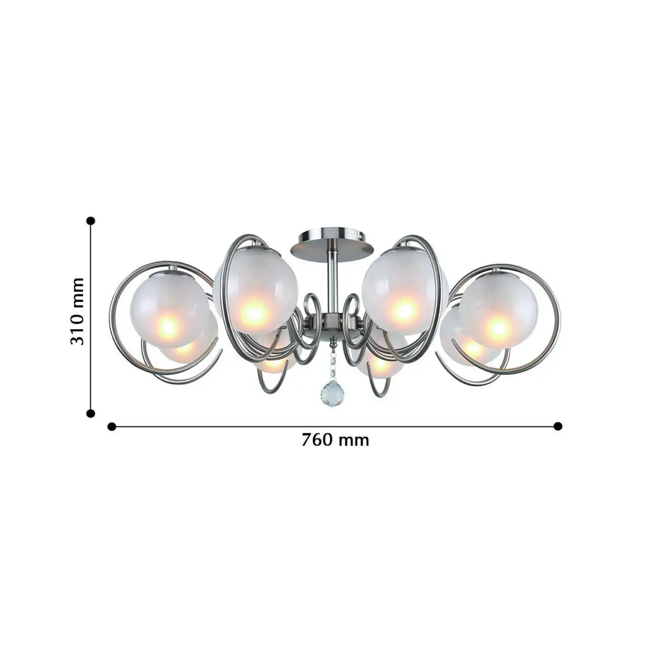 Люстра потолочная F-Promo Fabbio 2349-8UВнешний вид и материал:Материал арматуры: металл;Материал плафона / абажура: Стекло;Стиль: классический;Цвет плафона / абажура: Молочный;Общие характеристики:Высота, см: 31;Количество лампочек: 8;Лампы в комплекте (Да/Нет): нет;Линейка: Fabbio;Совместимые типы ламп: Накаливания;Тип: люстра;Тип крепления: планка;Технические характеристики:Мощность одной лампы, Вт: 40;Мощность, Вт: 320;Площадь освещения, кв.м.: 16;Степень пылевлагозащиты, IP: IP20;Тип цоколя: E14;.