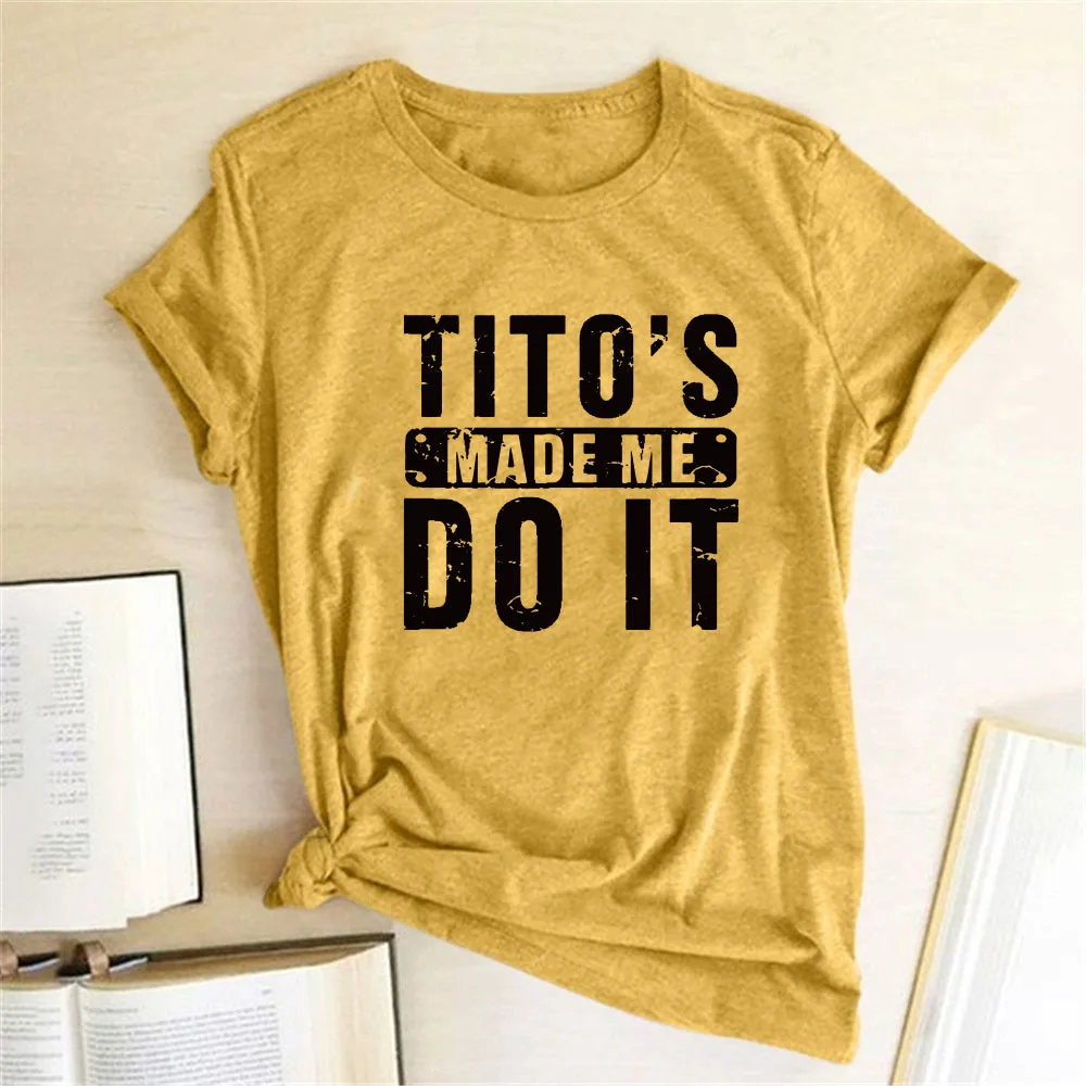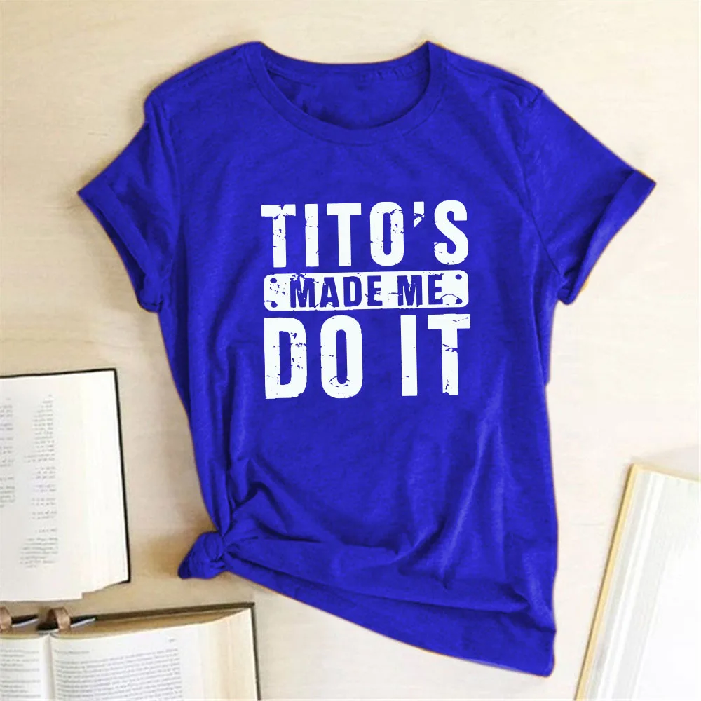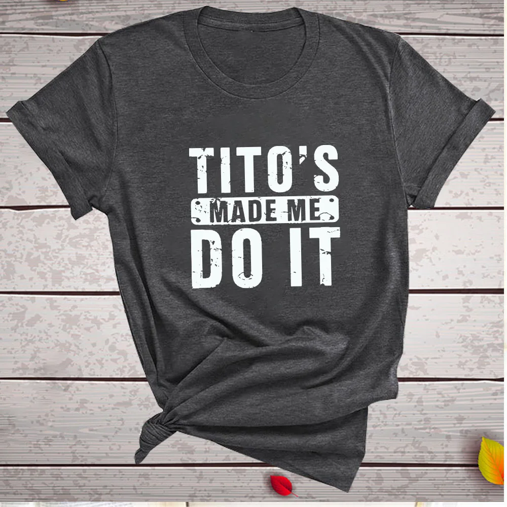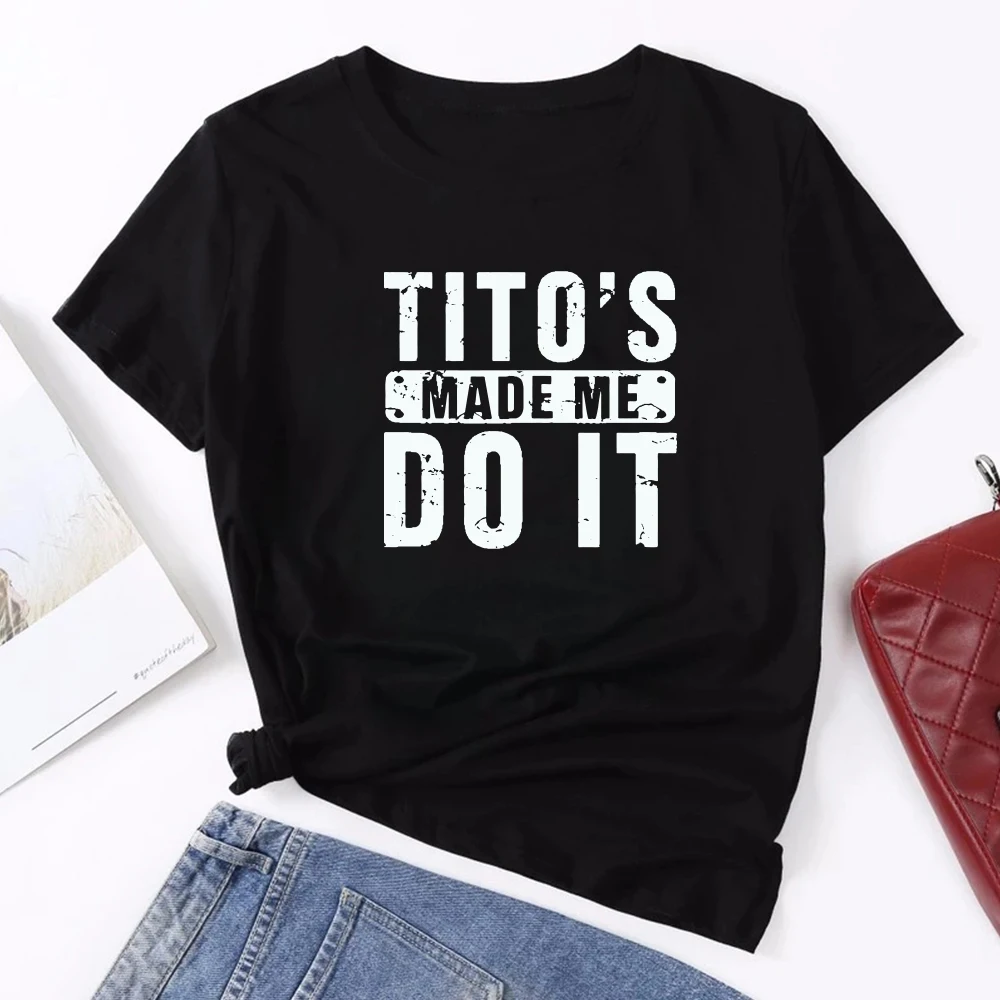 Забавная женская футболка с принтом Тито's Made Me Do It, летняя футболка для женщин, одежда с коротким рукавом и круглым вырезом, женская повседневная одежда