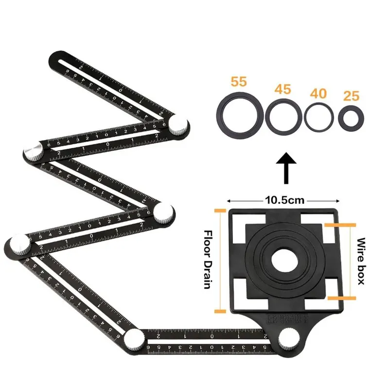 6-кратное конструкция с несколькими углами с измерительной линейкой; Алюминий складной позиционирование линейка Профессиональный DIY деревянная плитка инструмент