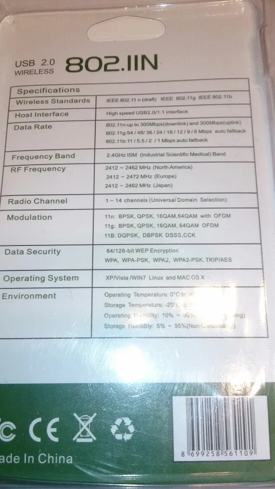 В описании написано, что это 600 Мбит/с, но на фотографиях видно, что это 150 Мбит/с. Это было то, что я ожидал, хотя Описание неверно. Хорошо, что он поставляется с компакт-диском драйверов, хотя windows распознает его без необходимости