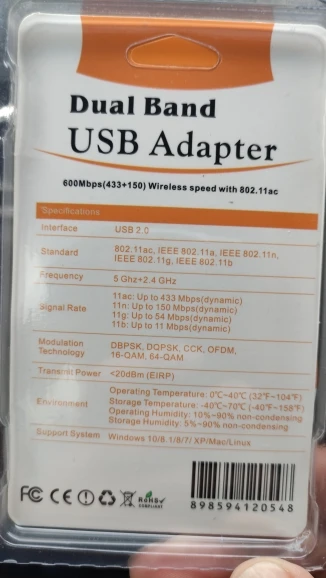 Диск с драйверами внутри, доставка 3 недели, подключил быстро, 2.4G ГАвНО работает, 5G удивлён, но работает ))) скрин прилагаю (6метров/2 стены от роутера, сеть 100mb). купил за 4$, это красная цена я думаю. сколько отработает.. ХЗ )