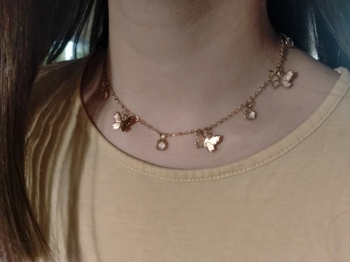 Ожерелье очень красивое, но бабочки ослаблены, вы должны иметь плоскогубцы или что-то, чтобы исправить это, имейте это в виду, я почти теряю две бабочки, будьте осторожны, но по цене это нормально.