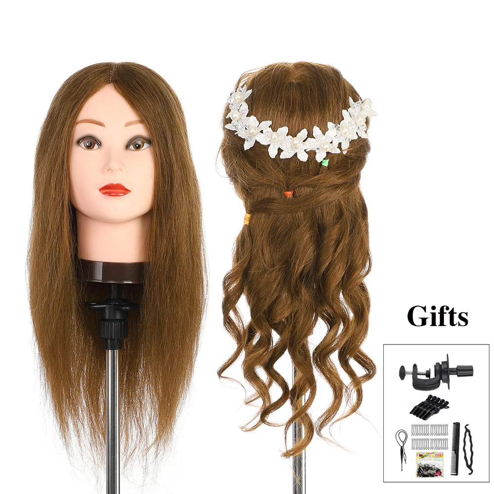 20 дюймов 100% настоящая голова для тренировки волос манекен голова куклы голова для парикмахера парикмахерский манекен с зажимом держательХарактеристика: