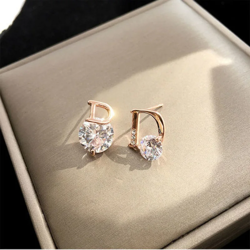 Простые компактные серьги-гвоздики с буквой D, дизайнерские блестящ...