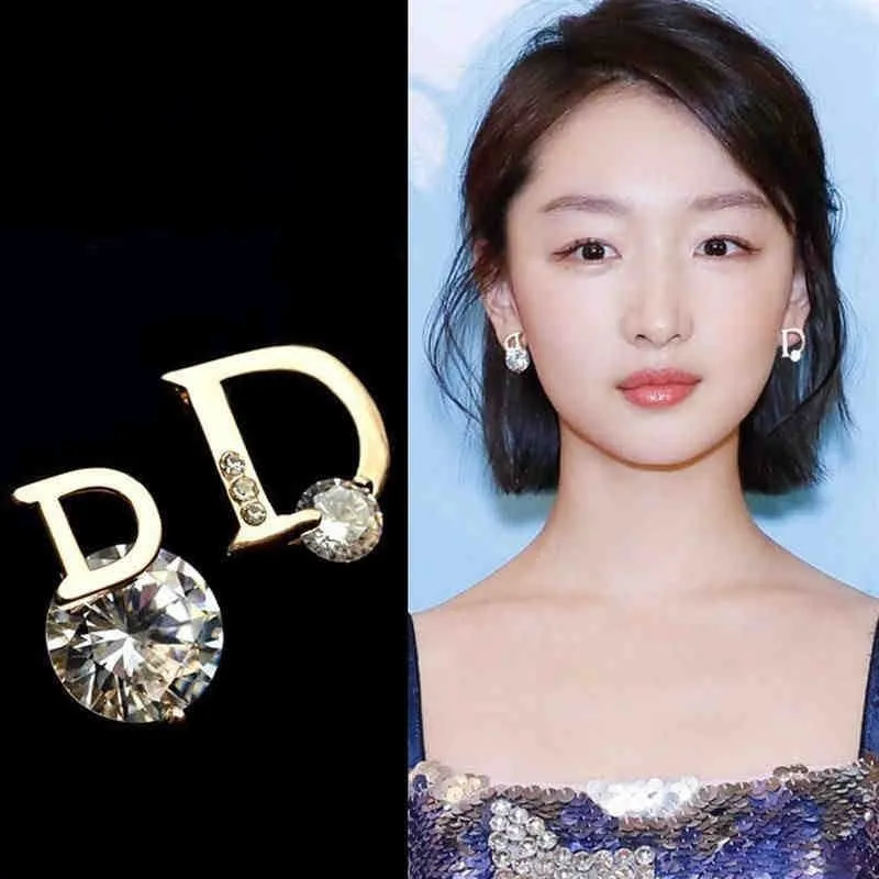 Женские серьги Стразы, новые корейские, с цирконом, буква D, украше...