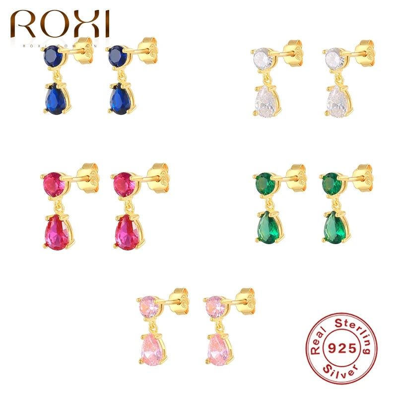 ROXI маленькие серьги из циркония с каплями воды для женщин, серебро 925 пробы, тренд 2021, серьги-гвоздики для пирсинга, вечерние ювелирные изделия, серьги Huggie