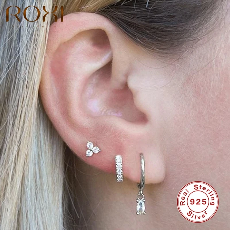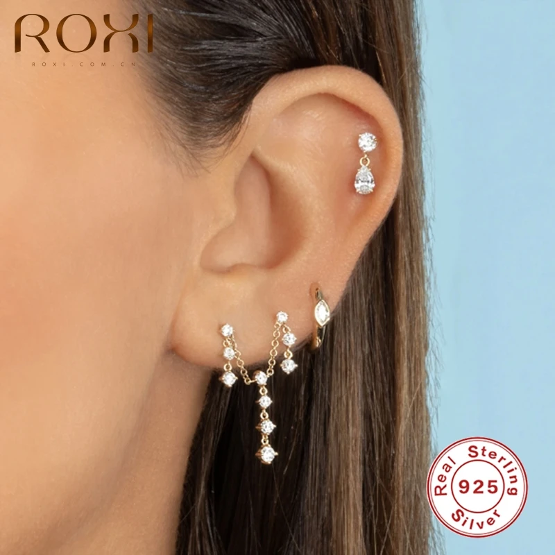 ROXI мелкие капли воды циркон серьги для женщин 925 серебро 2021 тренд пирсинг уха серьги со шпилькой вечерние Ювелирные серьги Huggie
