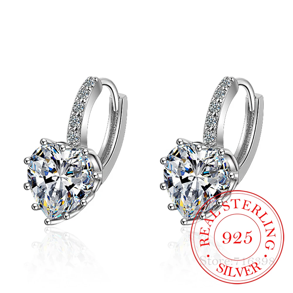 925 стерлингового серебра ювелирные украшения 925 Серебряное разноцветное Цвет Кристальное сердце, серьги-кольца для женщин Свадебная вечеринка подарок ювелирных изделийjkfljda