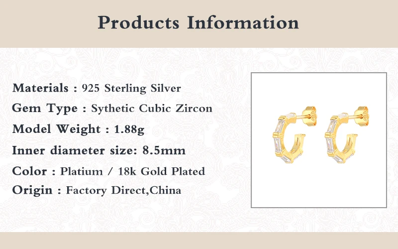 【Тип товара 】:Прямоугольный цирконСерьги-гвоздики