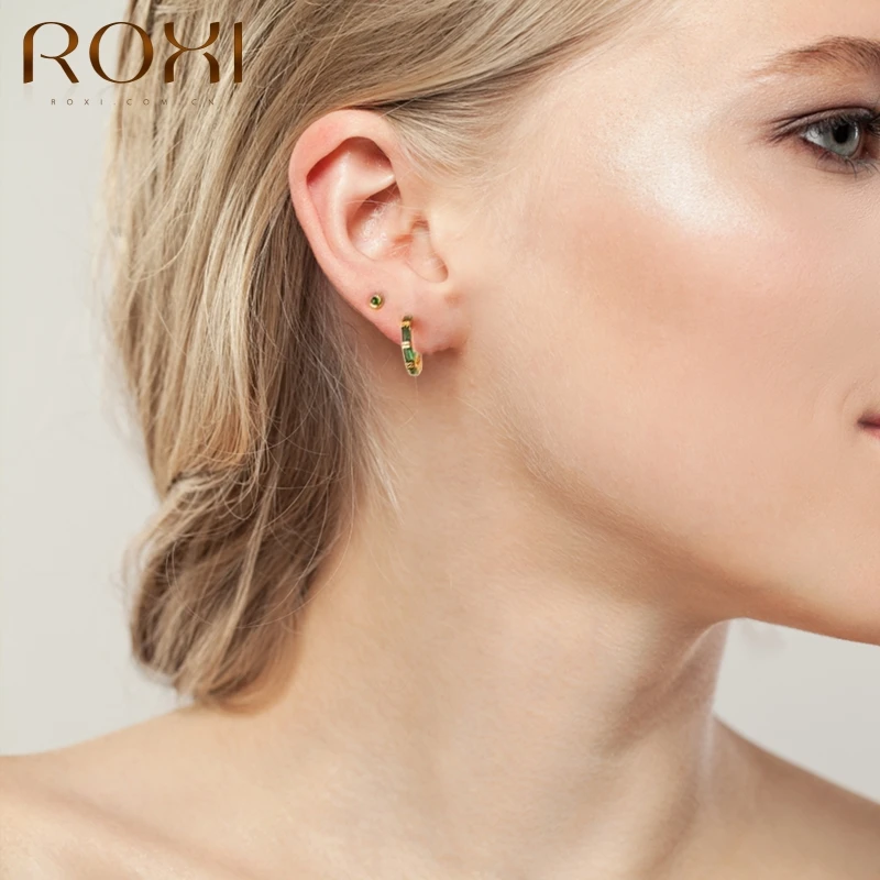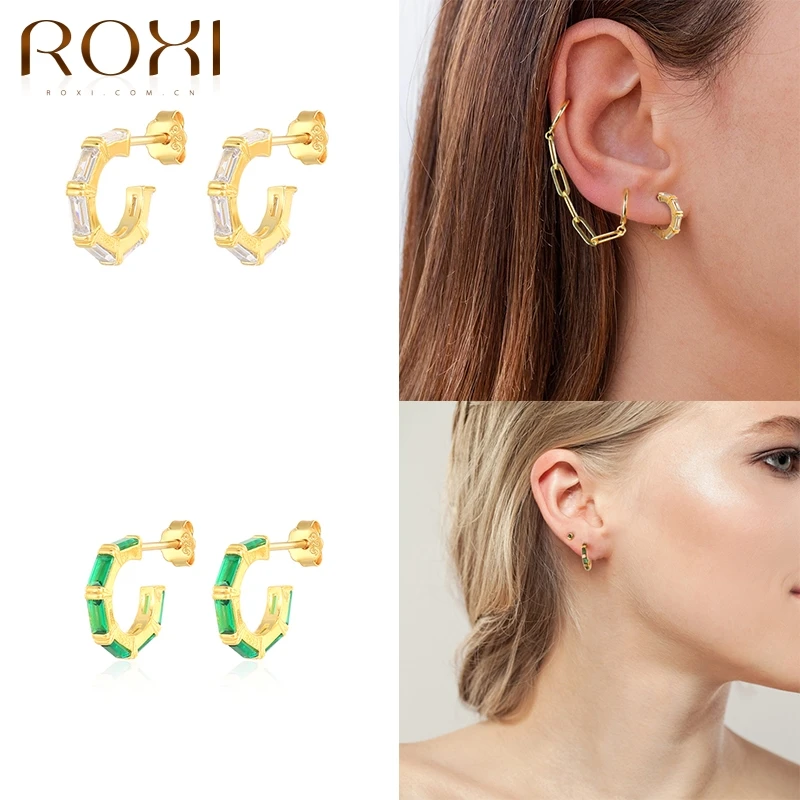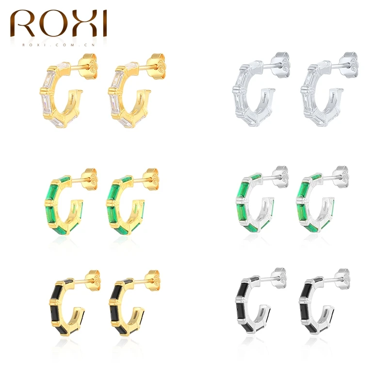 ROXI Цвет прямоугольный циркон серьги для женщин 2021 Горячая пирсинг уха Стад Серьги ювелирные изделия 925 стерлингового серебра серьги Huggie
