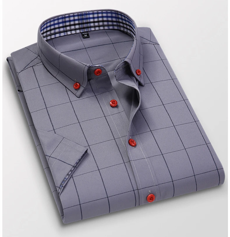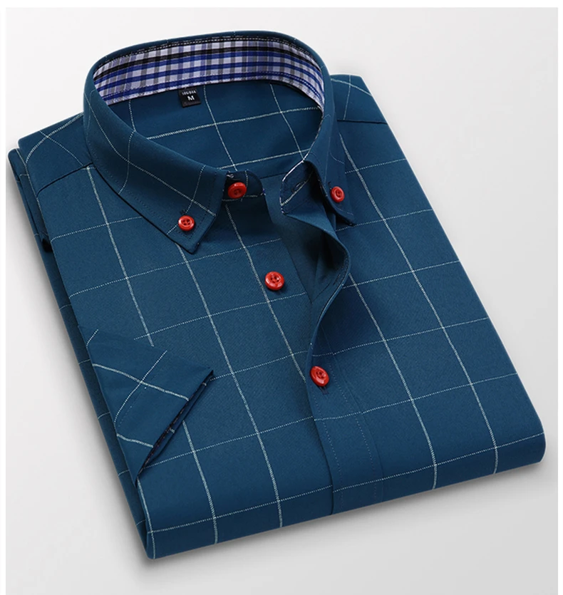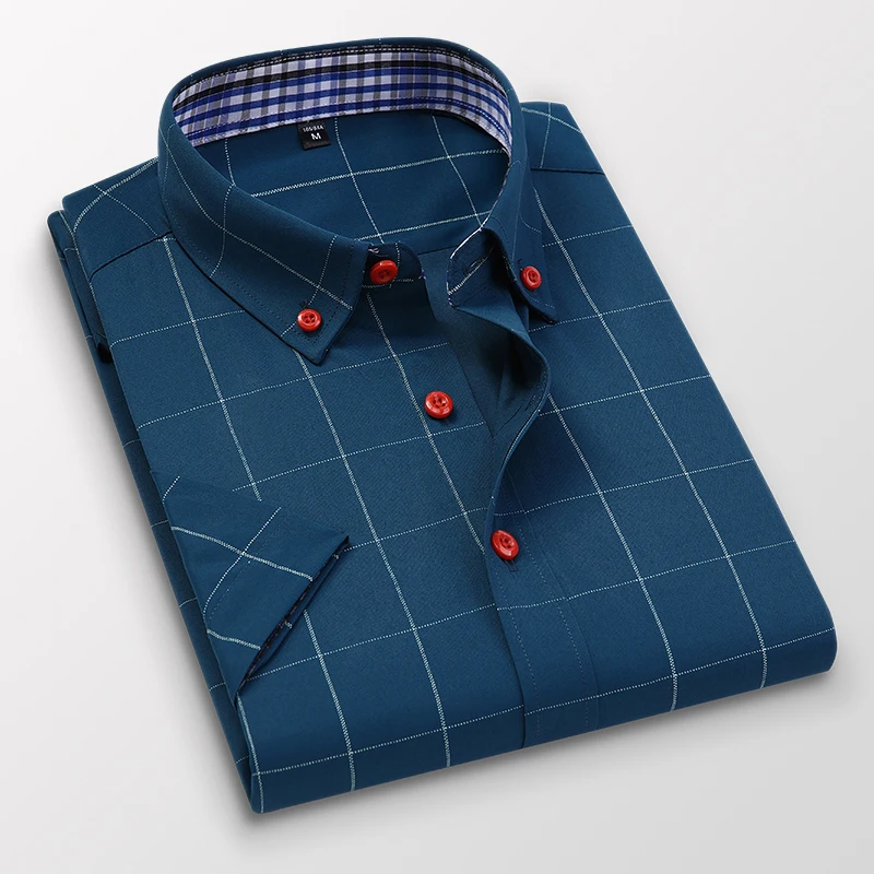 Мужская Тонкая деловая рубашка, Классическая, универсальная, в шотландскую клетку, с коротким рукавом, 2021