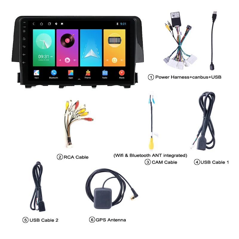 1 х HONDA CIVIC Android автомобильное радио1 х Кабель питания1 x Антенна GPS1 x вход камеры1 х RCA вход и выход2 x USB кабельРуководство по эксплуатации-1 шт.