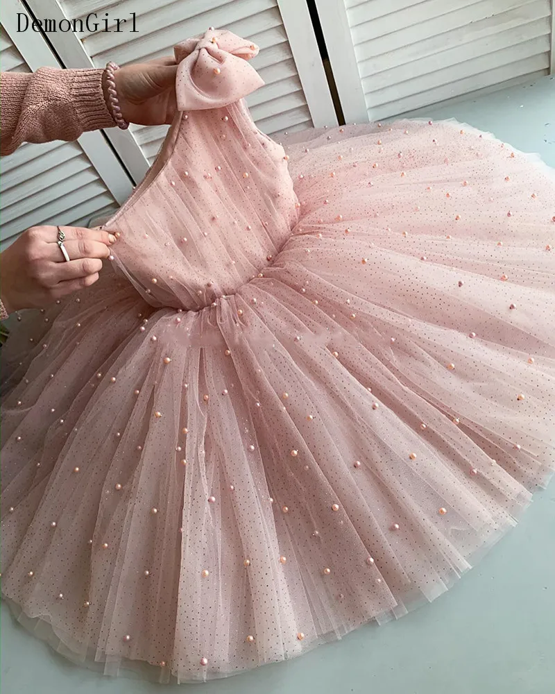 Фатиновое платье с открытой спиной и жемчужинами для девочек
