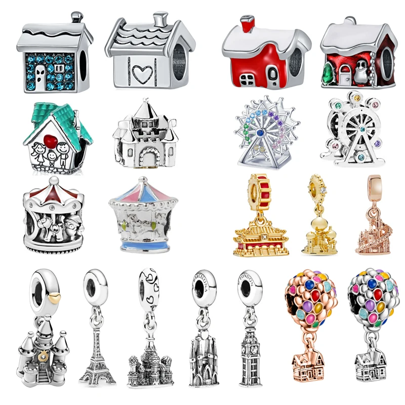 Бусины-подвески для женщин и девочек, серебристые, в форме замка