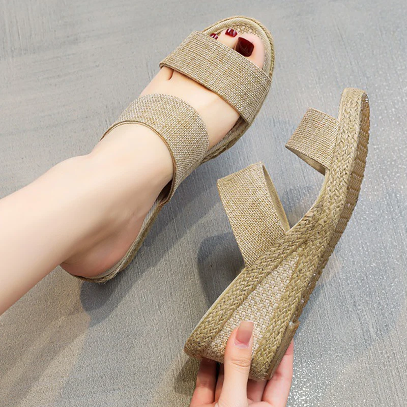 Богемные женские сандалии на танкетке 6 см из льна и хлопка, женские эспадрильи на пеньковой платформе, удобная обувь, 2021