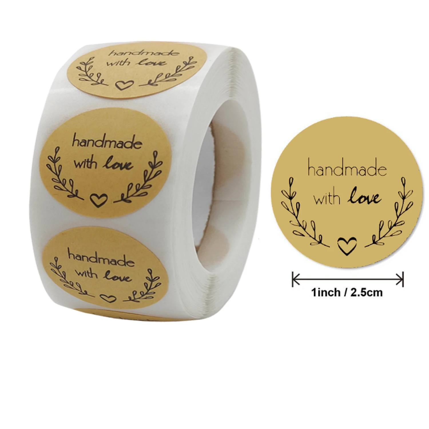 500 шт., 1 дюйм, Крафтовая наклейка с надписью Handmade with Love