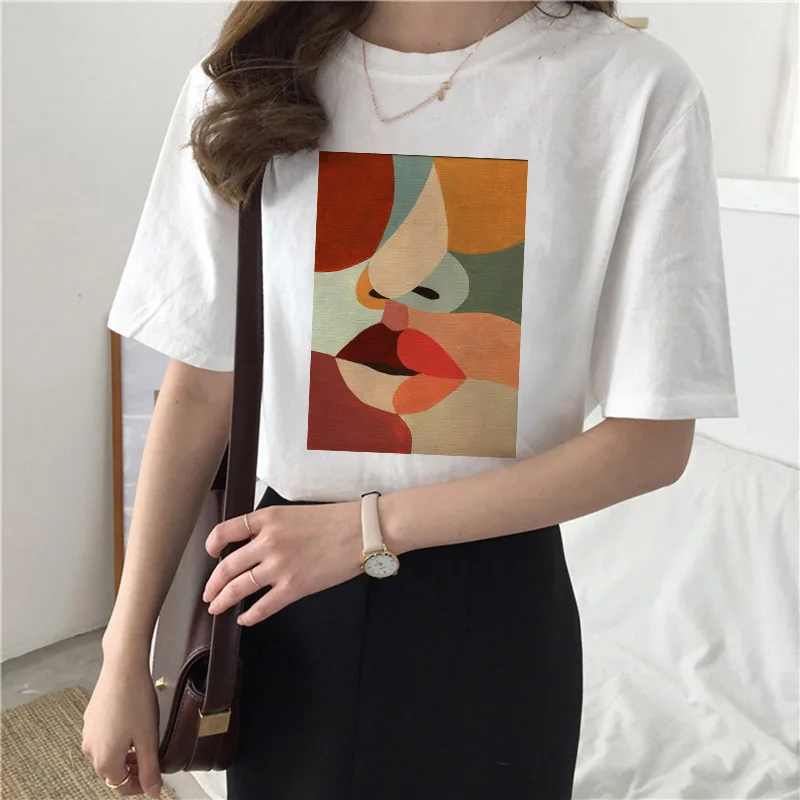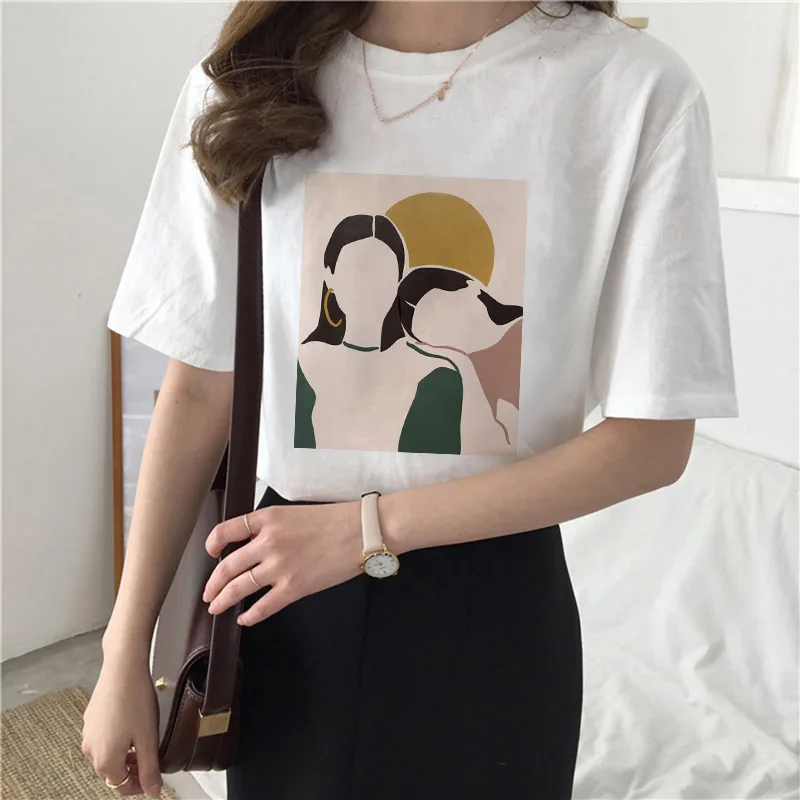 Футболка женская с винтажным принтом, Модный повседневный топ с мультяшным принтом, свободная рубашка в стиле Харадзюку, с круглым вырезом, Ins