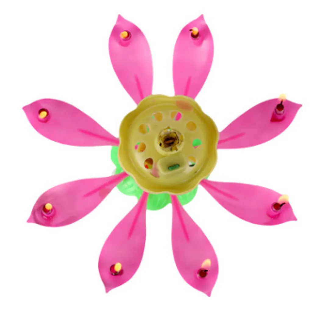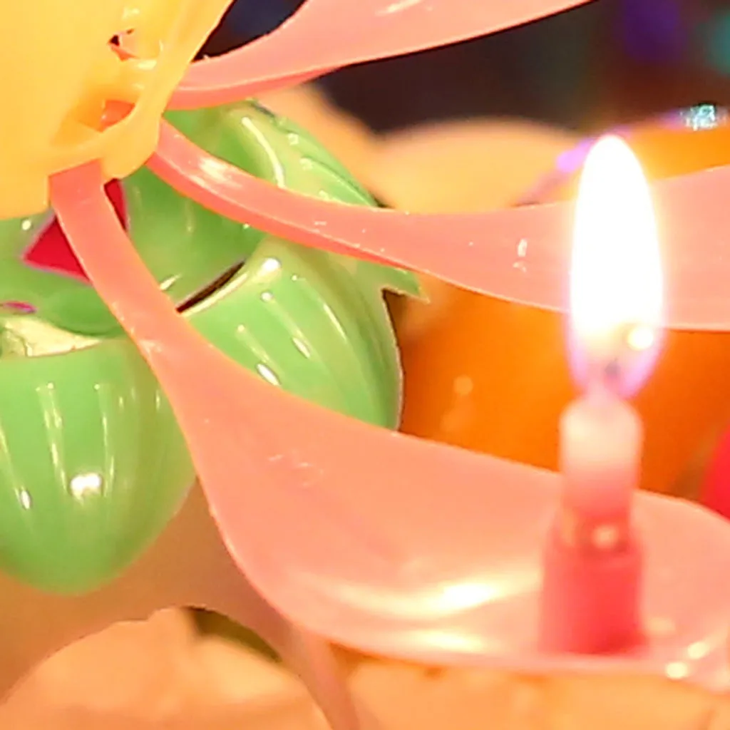 Музыкальная свеча с двойным цветкомЦветы день рождения торт плоский вращающийся электронный