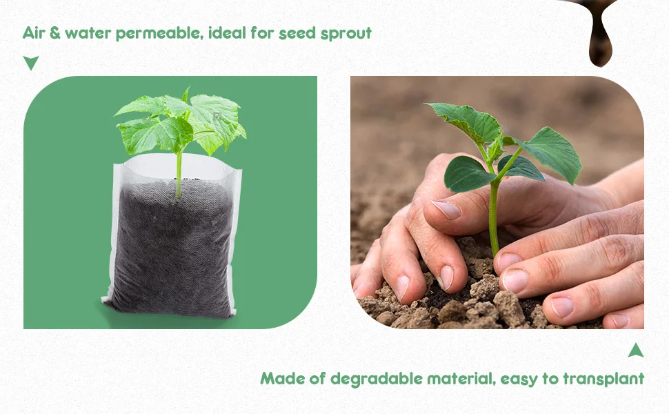 Экологически чистый дышащий и биоразлагаемый нетканый материал, не нужно снимать сумку при трансплантации, улучшая уровень выживания растений.