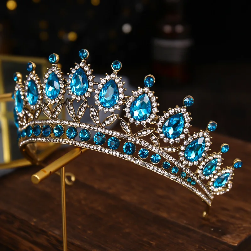 Тиары и короны для женщин, голубые стразы в стиле барокко, свадебны...