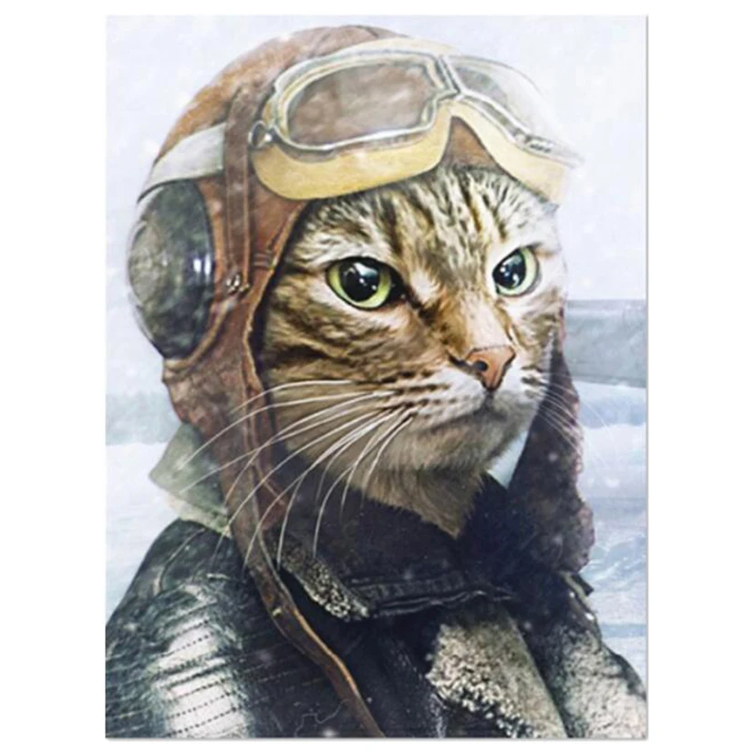 5d Diy домашний декор для стен Алмазная картина Авиатор кошка картины полный квадрат/Круглый Алмаз вышивка искусство Алмазная мозаика BM051