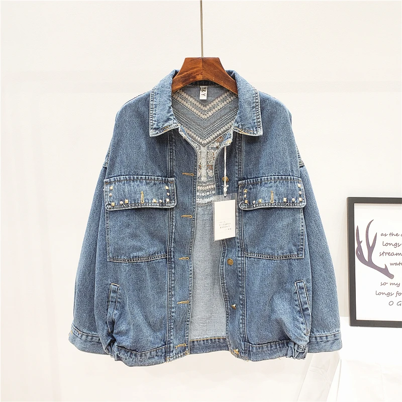 Весенне-осенняя Модная Джинсовая куртка для женщин с заклепками и к...