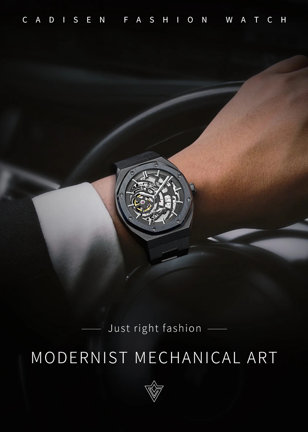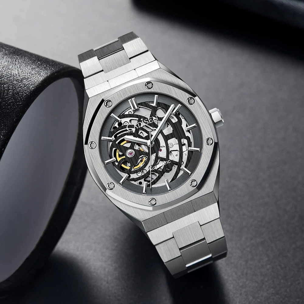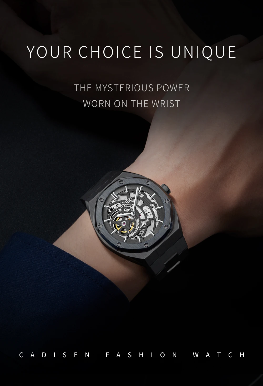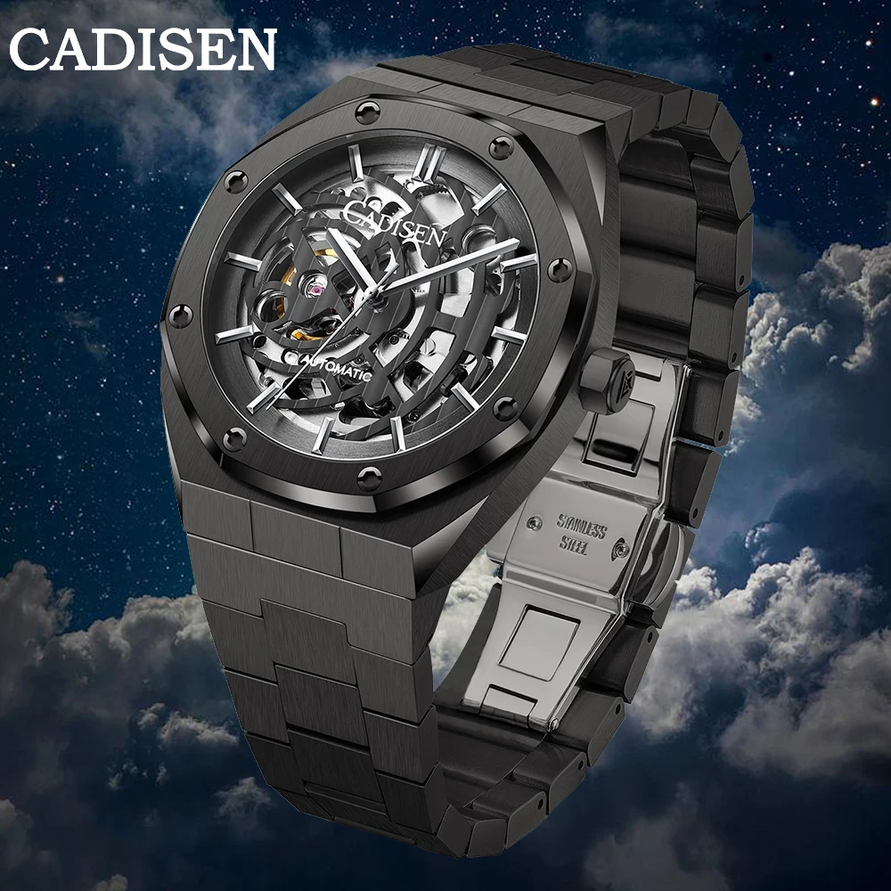 2021 CADISEN Новый Для мужчин, мужские часы, Нержавеющаясталь автоматические механические часы с сапфировым стеклом полые Водонепроницаемый дизайн в стиле милитари