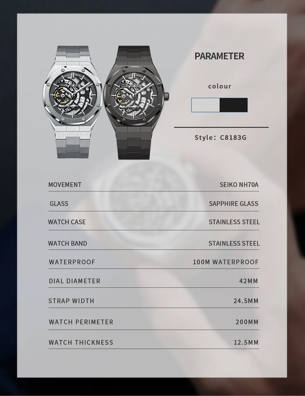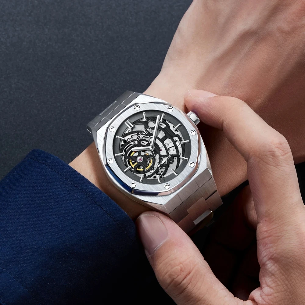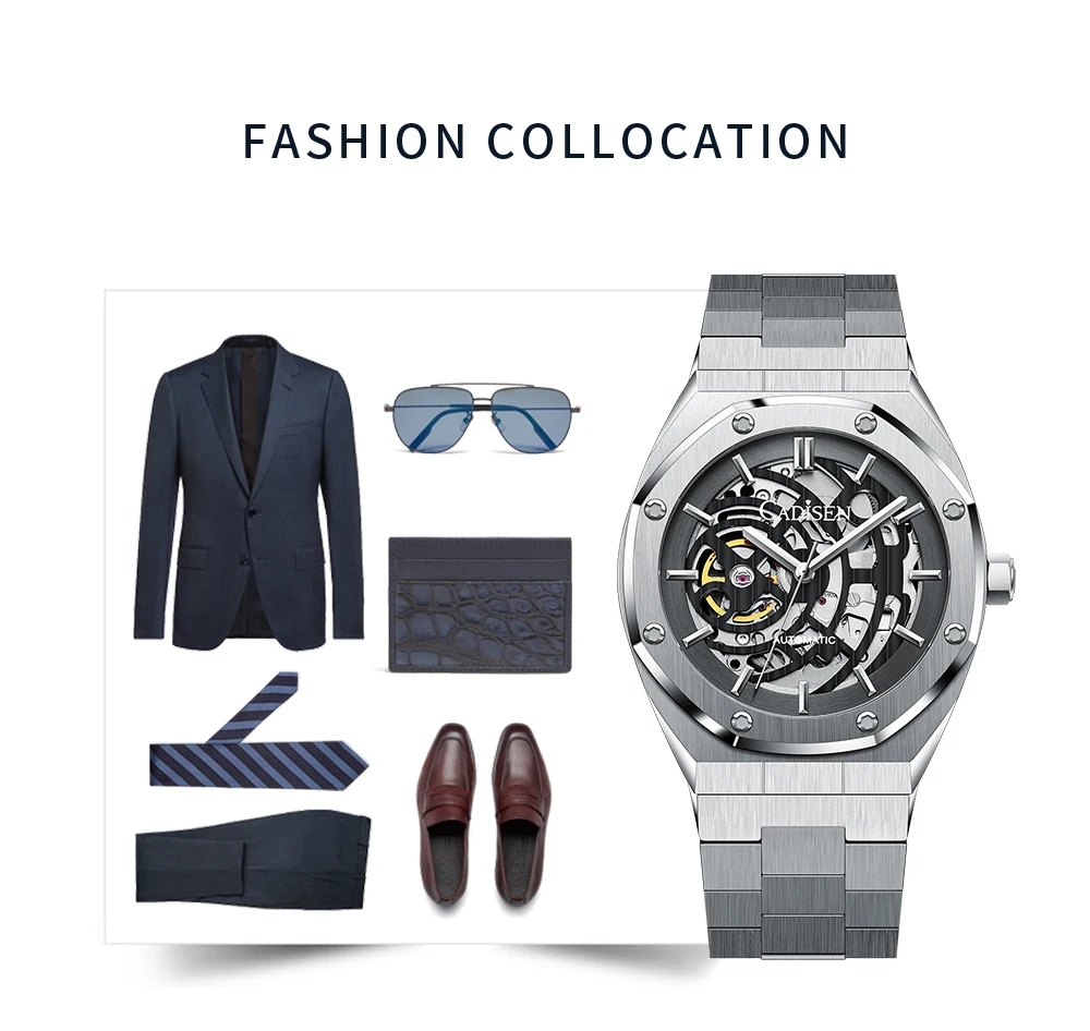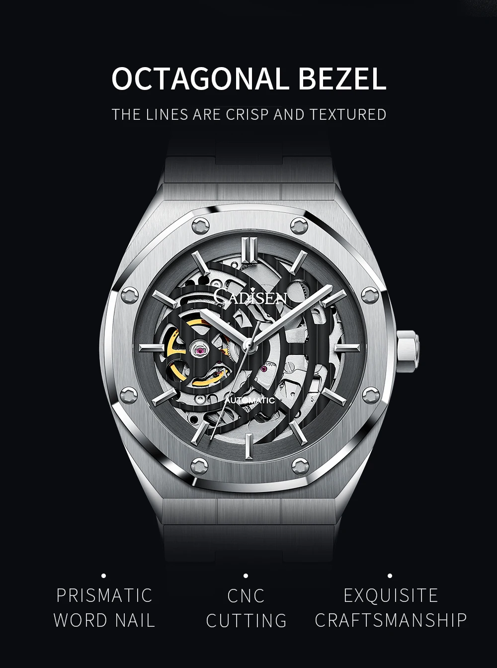 2021 CADISEN Новый Для мужчин, мужские часы, Нержавеющаясталь автоматические механические часы с сапфировым стеклом полые Водонепроницаемый дизайн в стиле милитари