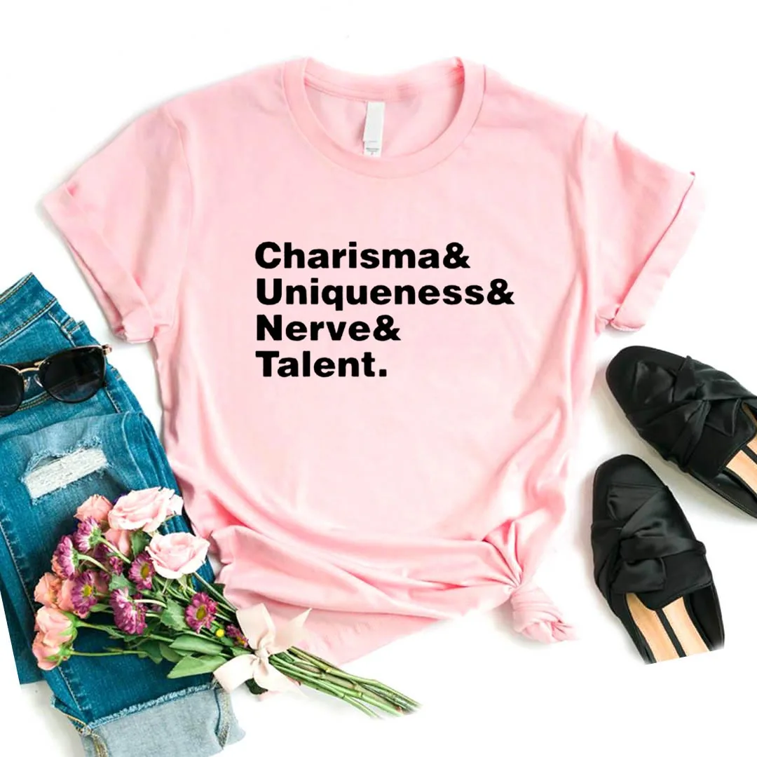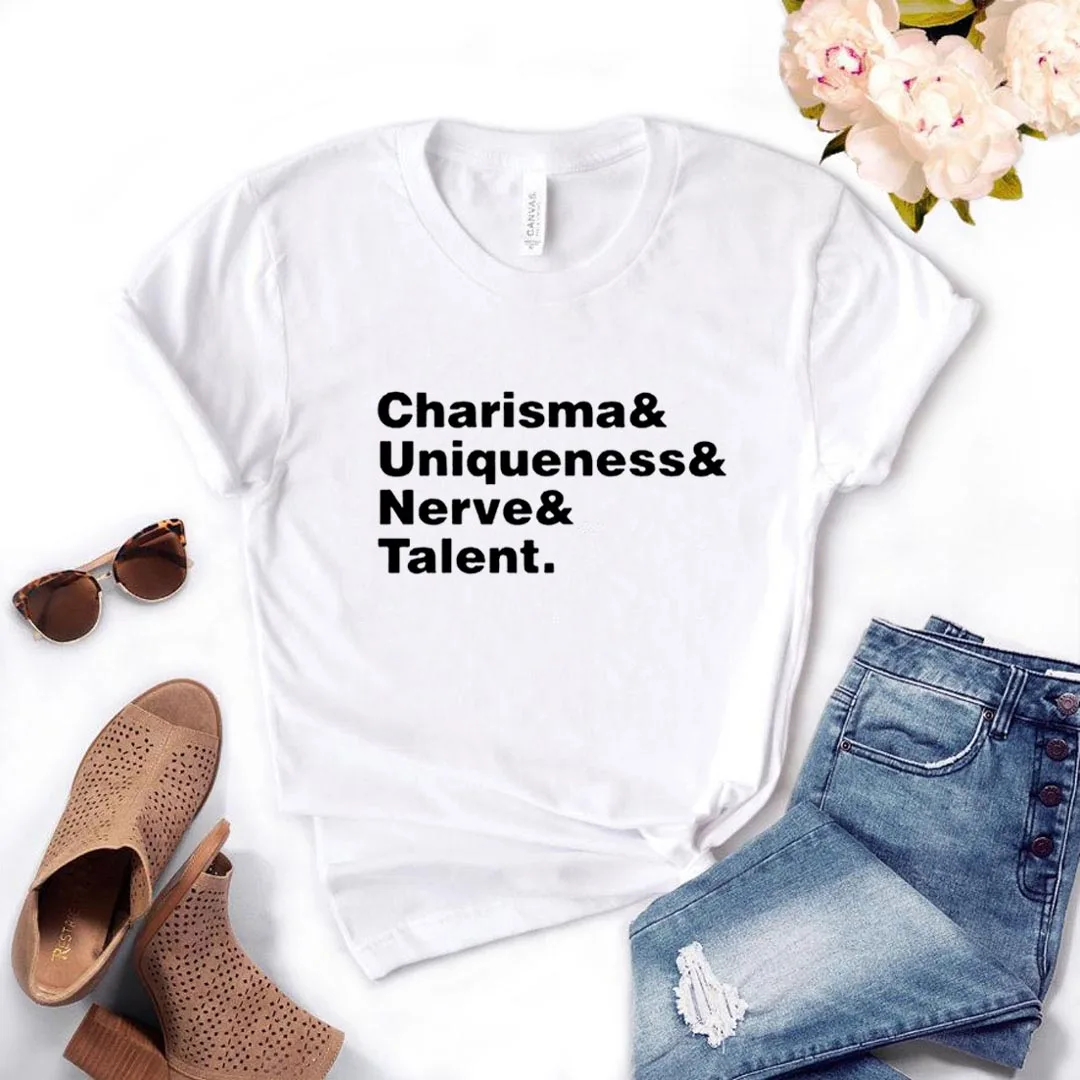 Харизма, уникальность, нервный и талантливый принт, женская футболка, хлопковая Повседневная забавная футболка, топ в подарок для молодых девушек
