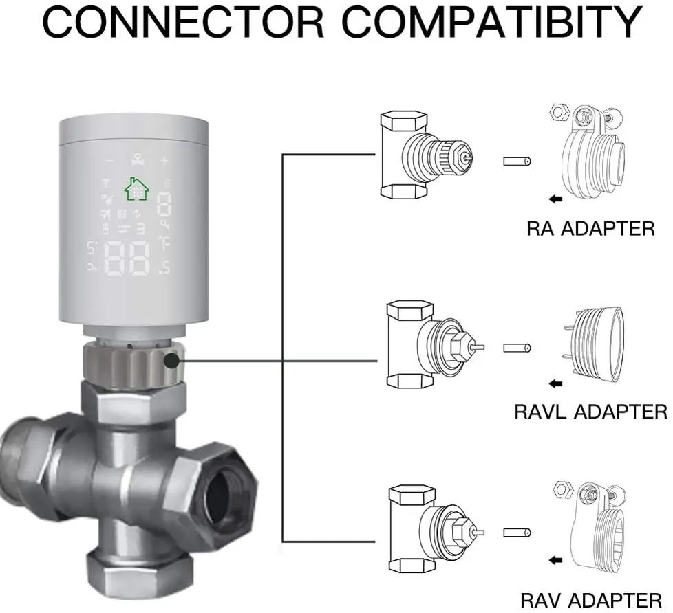 1. Термостат привода радиатора Smart Tuya ZigBee: Новый мини-дизайн с простым и четким ЖК-дисплеем на корпусе, термостат радиатора с ЖК-экраном и двумя секциями батареек AA, это специальный клапан, используемый совместно с радиатором отопления. Искусственная установка температуры в помещении, В основном используется в системе отопления пола для управления закрытием и открытием трубы.