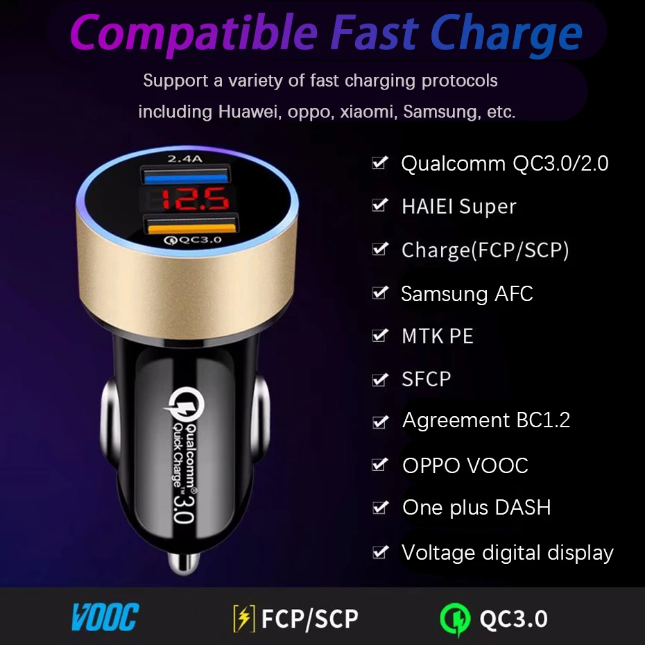 Быстрое зарядное устройство USB 3A со светодиодным дисплеем, автомо...