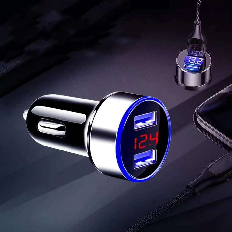 Автомобильное зарядное устройство с ЖК-дисплеем и двумя USB-портами