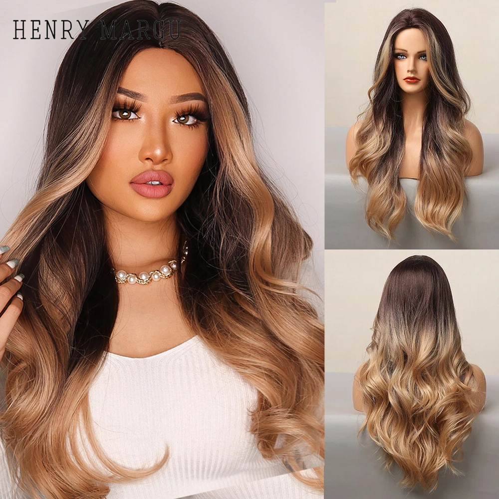 Парик для чернокожих женщин Harry MARGU Honey блонд, коричневые Длинные Синтетические волосы с эффектом омбре, для ежедневных косплей, термостойкий