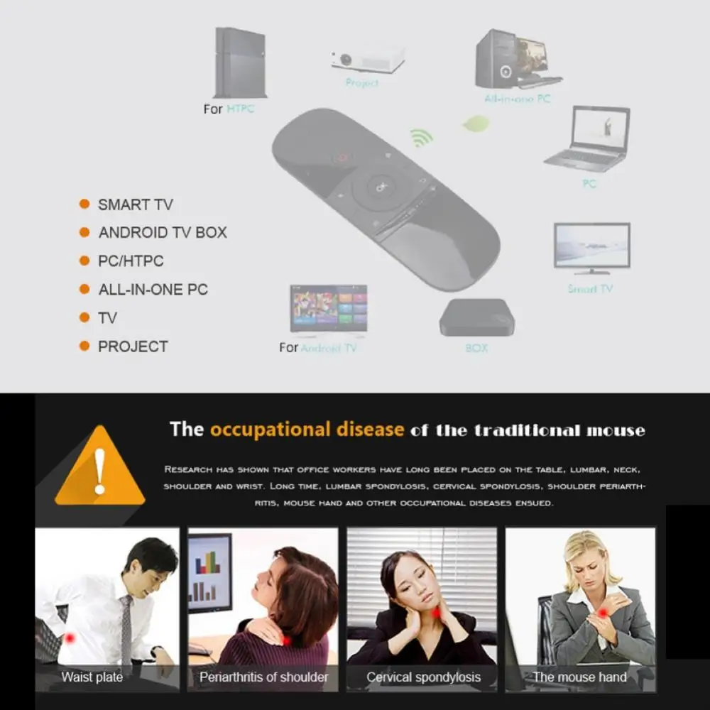 2,4 GHz обучающая двухсторонняя Мини Беспроводная клавиатура Air Mouse IR пульт дистанционного управления с usb-приемником для Android TV Box компьютера Характеристики:Портативный и легкий, удобный для захвата.2,4 ГГц Беспроводная технология, анти-помех соединения.Поставляется с usb-приемником, подключи и работай, прост в эксплуатации.Подходит для smart TV, для Android TV Box, для ПК/HTPC, проекторов, компьютеров и т. д. Название товара: Беспроводная КлавиатураМатериал: АБС-пластикРежим беспроводной модуляции: GFSKЧастота модуляции: 2,4-2,4835 ГГцРабочая температура: от-20 до 65 градусов ЦельсияТип батареи: 3,7 V/300 мА/ч, Перезаряжаемые батареи (в комплекте)Общая потребляемая мощность: <15 мАПотребляемая мощность в режиме ожидания: 25uAКоличество клавиш: 57 клавишДистанция дистанционного управления: >10 метровПорт зарядки: Micro USBХарактеристики: беспроводной, пульт дистанционного управления, многофункциональныйРазмеры: 15,8 см x 5,5 см x 1,65 см/6,22 "x 2,17" x 0,65 "(прибл.) Примечания:Благодаря светильник и экрана Цвет Товара может быть s светильник ly отличается из-за характеристик монитора компьютера.Возможны незначительные отклонения в размерах из-за различных измерений вручную. Посылка включает в себя:1 x беспроводная клавиатура1 usb-приемник1 x зарядный кабель