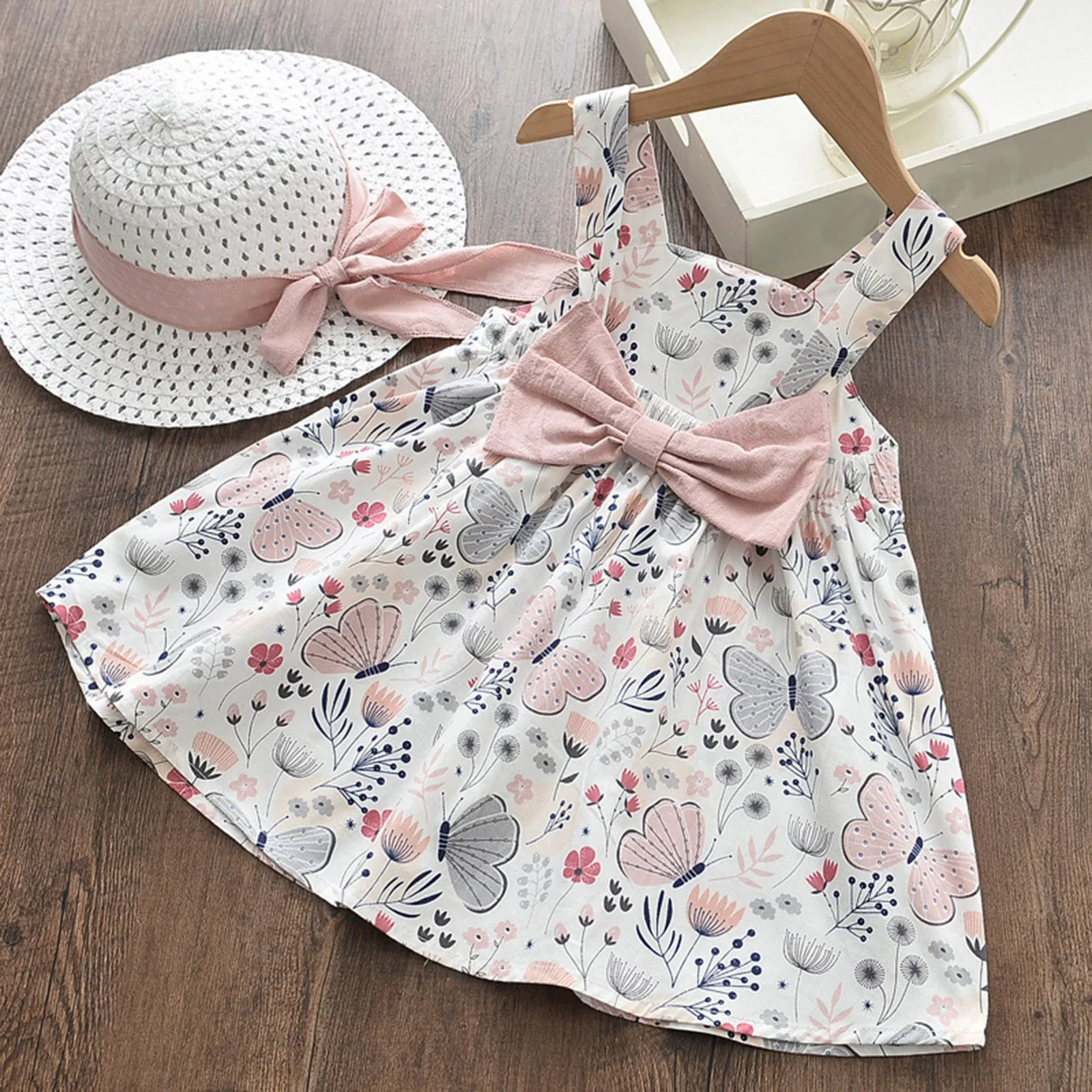 Одежда для маленьких девочек, летнее платье для маленьких девочек, платья, 2021, пляжная одежда без рукавов для девочек с принтом в виде шляпы, детское платье принцессы