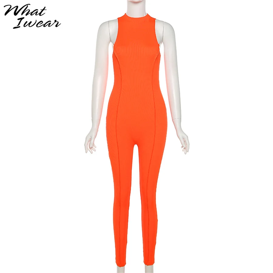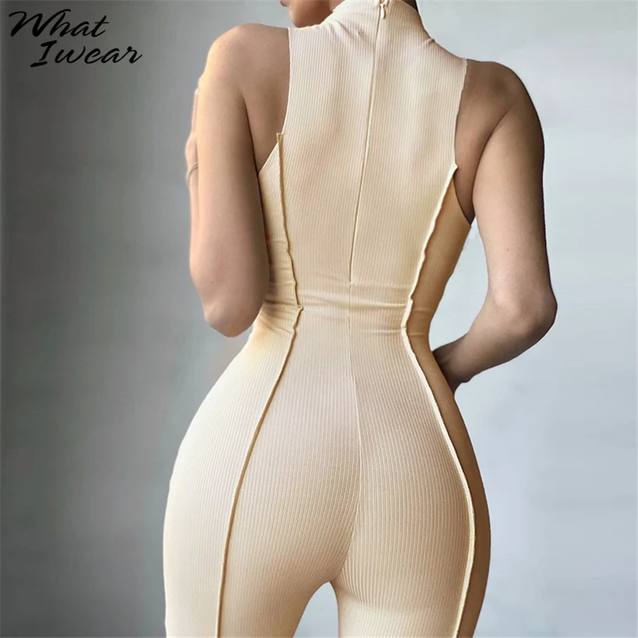 Женский комбинезон без рукавов, однотонный Облегающий комбинезон в ...