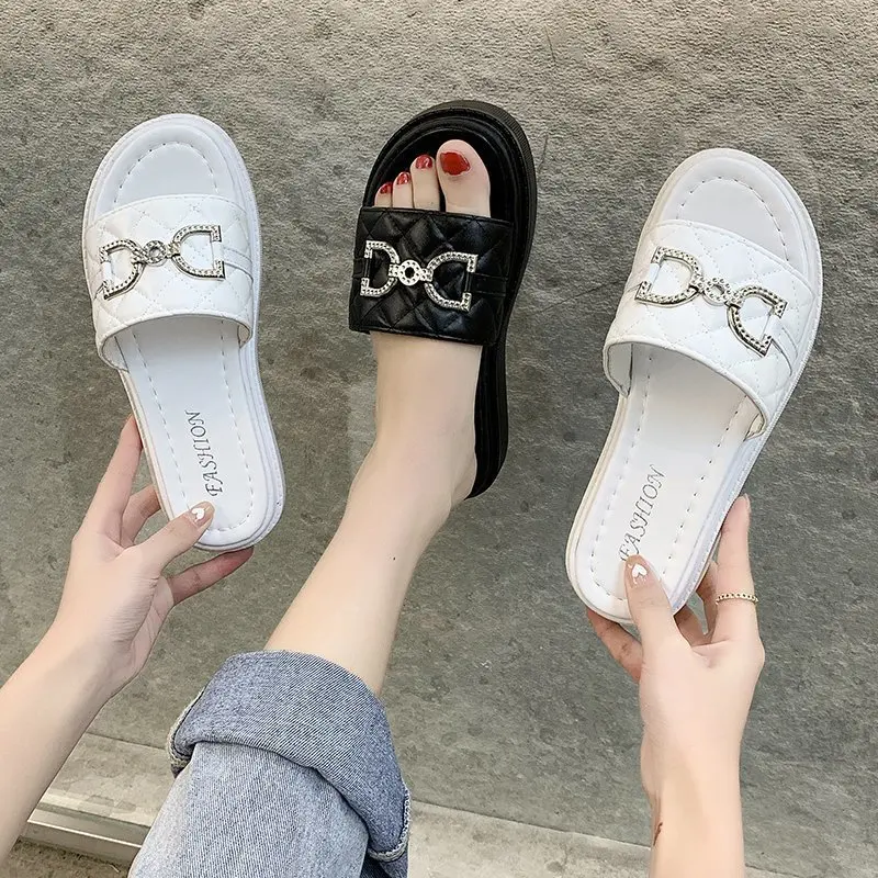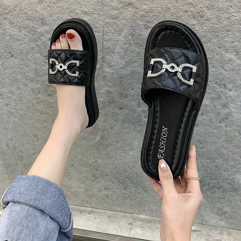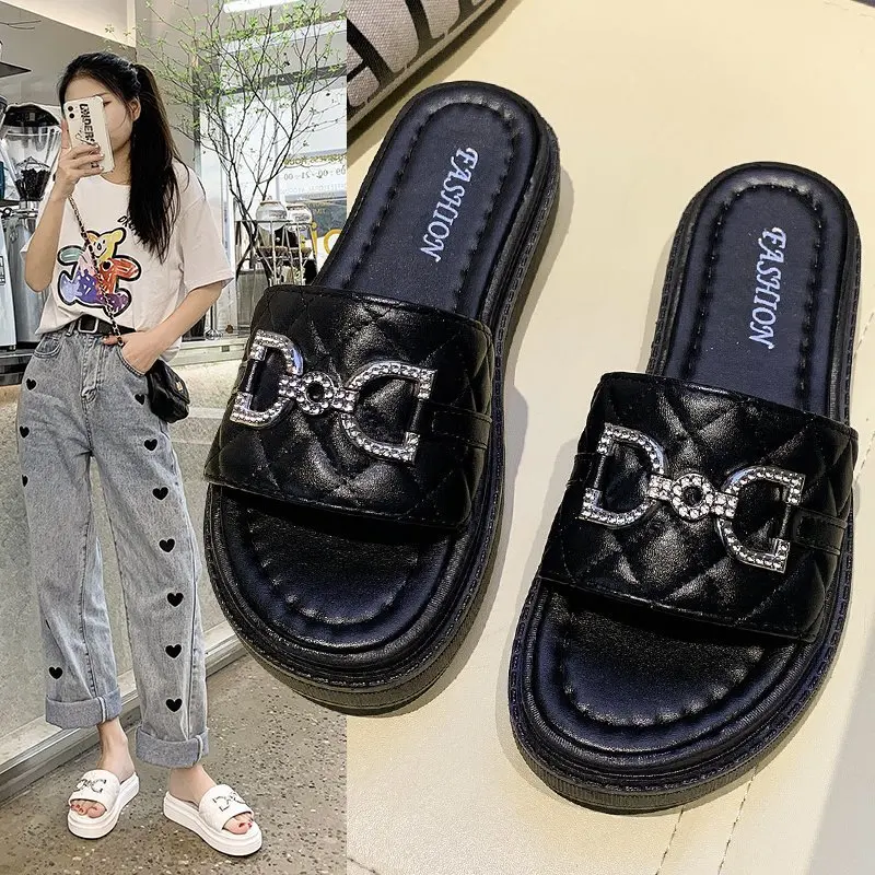 Шлепанцы стразы женские, плоская подошва, повседневные сандалии, летняя обувь, 2021