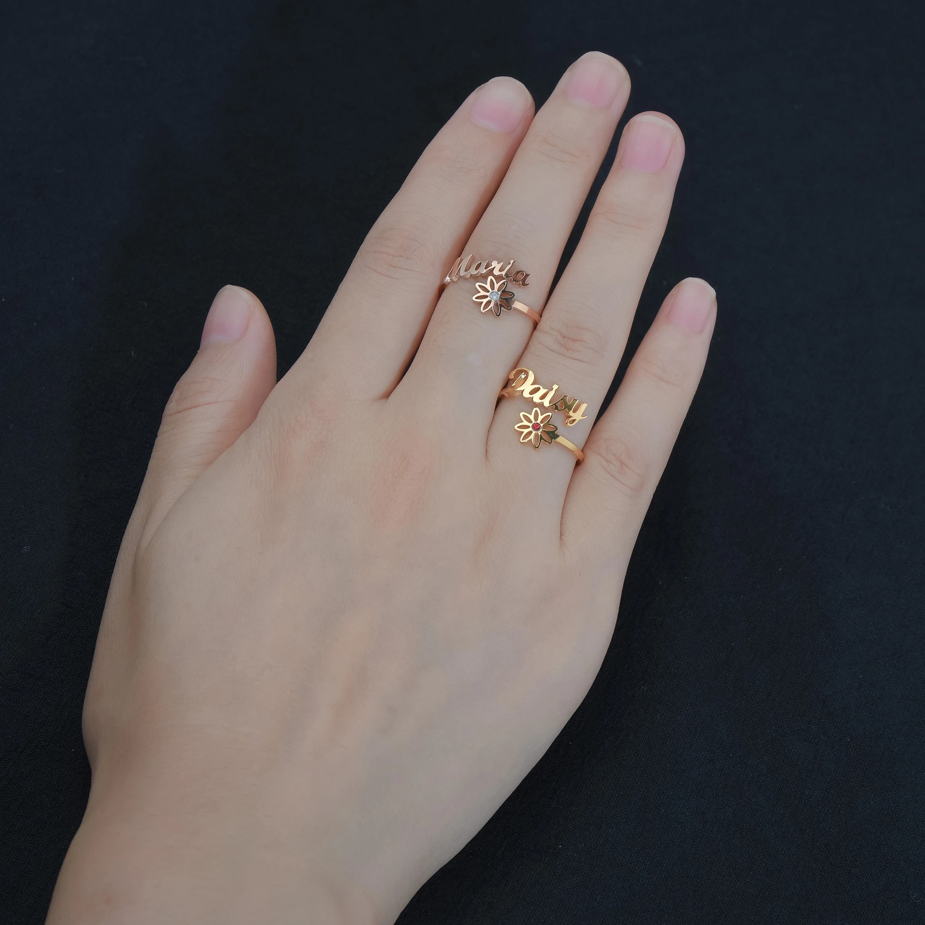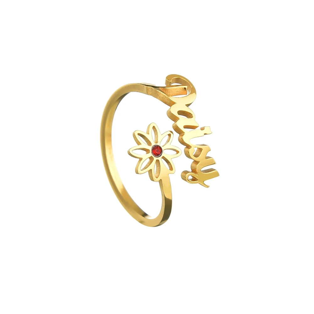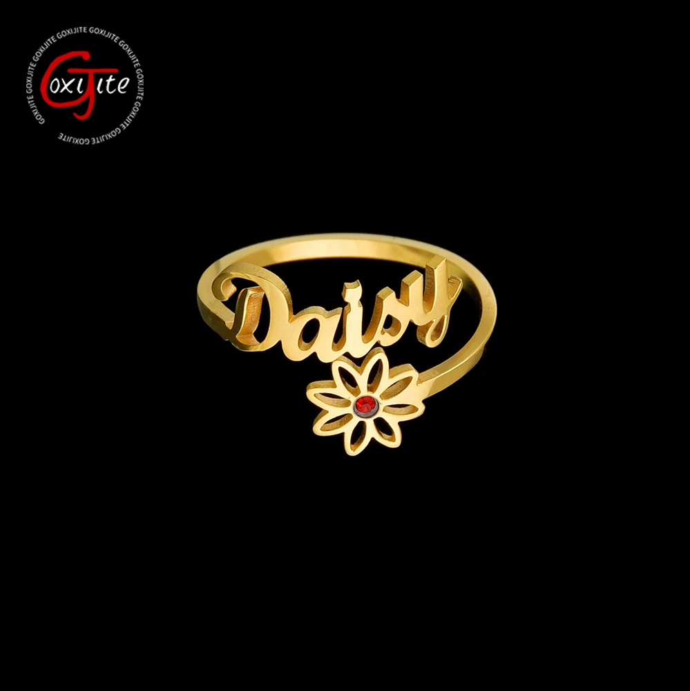 Название : Goxijite модное пользовательское имя милое цветочное кольцо для девочки персонализированный камень по дню рождения надпись именная табличка Регулируемые кольца прекрасный подарок
