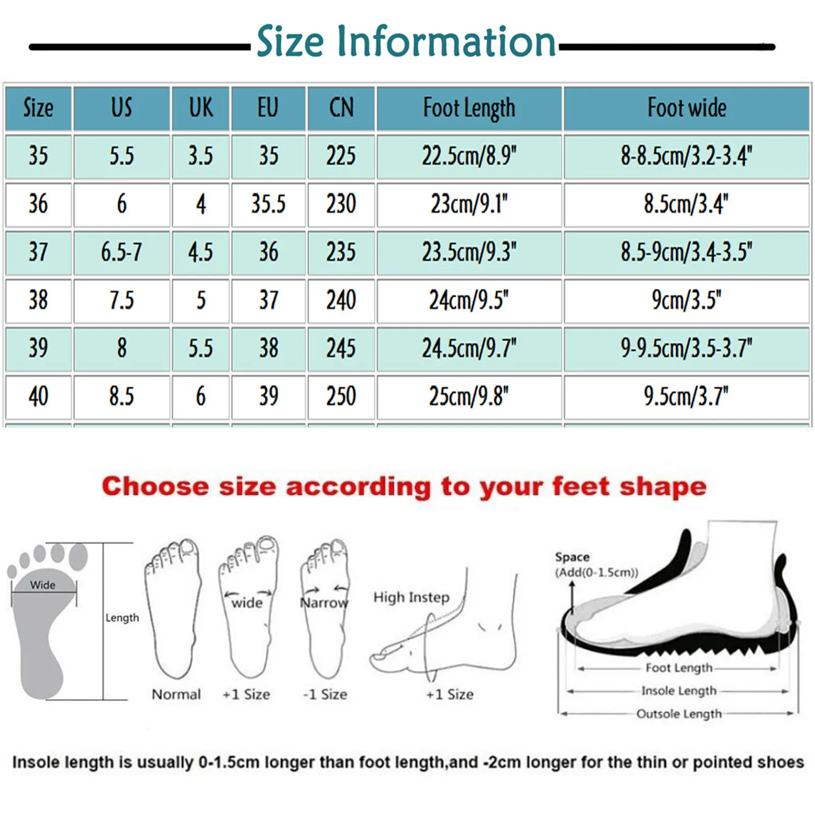 Напоминание:В разных стилях обуви, пожалуйста, выберите размер в соответствии с типом вашей стопы.