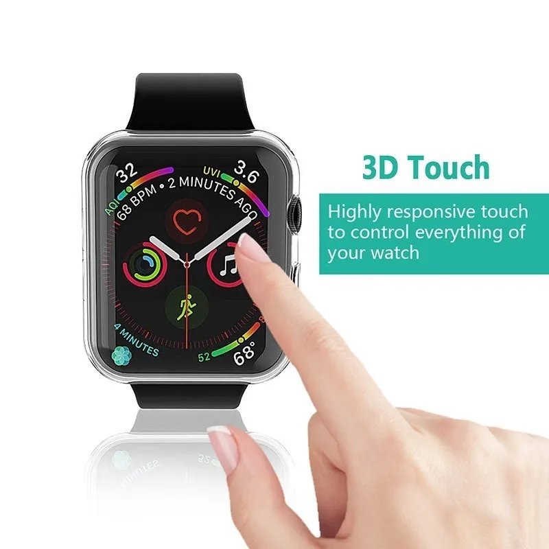Примечание:Этот чехол с защитной пленкой предназначен для защиты внешней поверхности вашего apple watches. Гладкий, кристально прозрачный чехол из ТПУ. Он защищает экран и четыре стороны, защищает от царапин и столкновений.