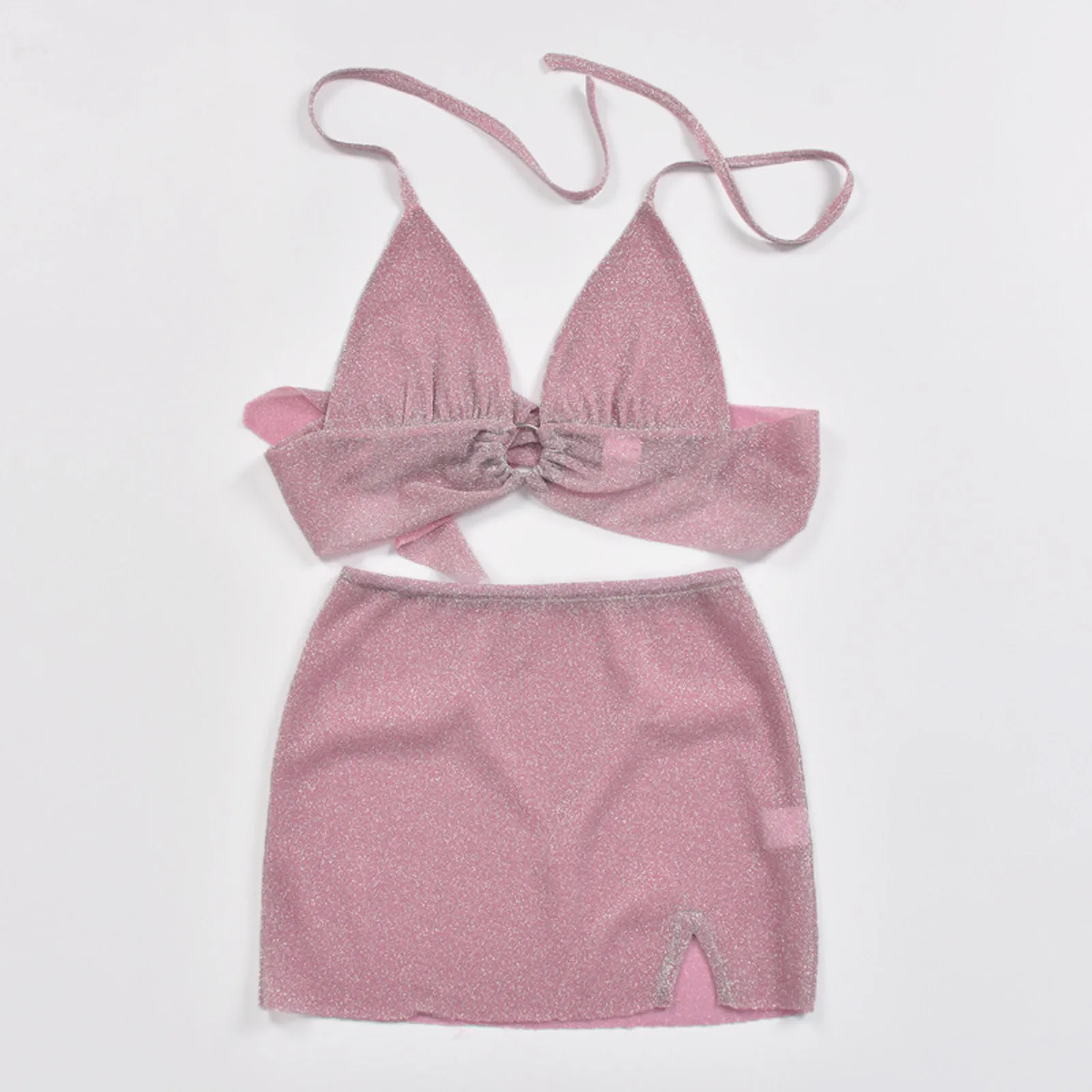 Эстетичные блестящие костюмы Y2K из 2 предметов, соблазнительные кружевные блестящие шелковые костюмы с открытой спиной и открытой спиной, блестящие майки и бриджи