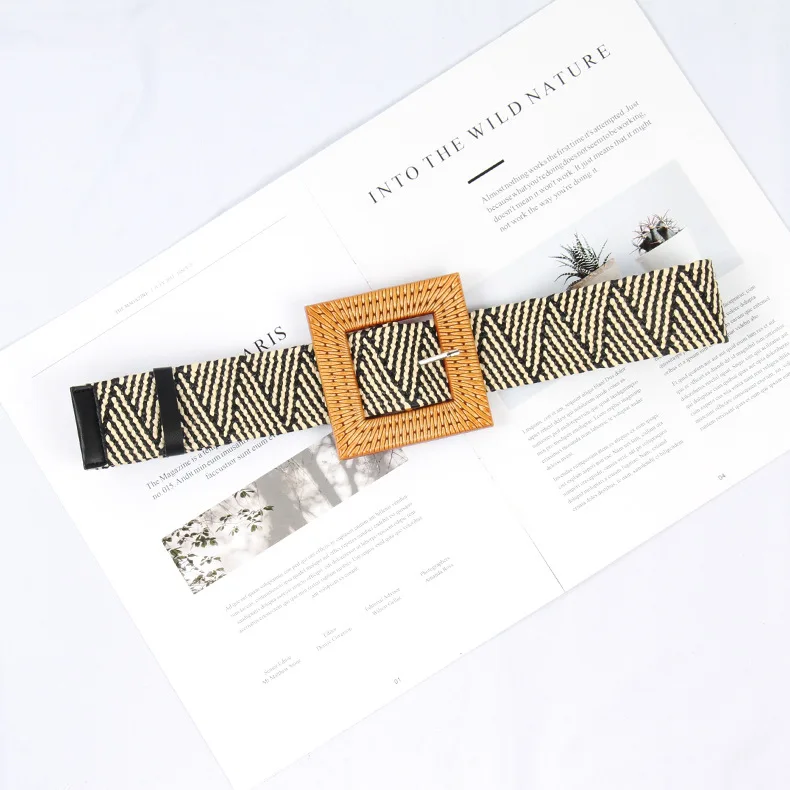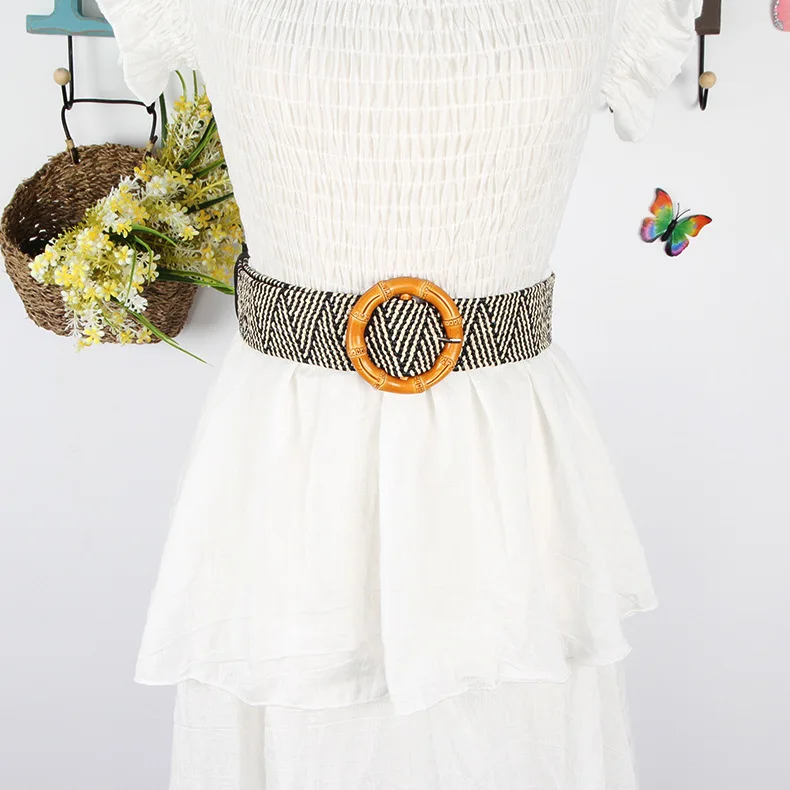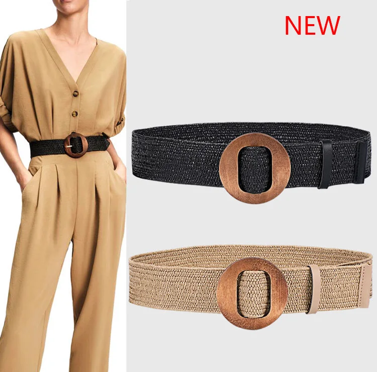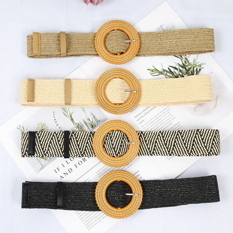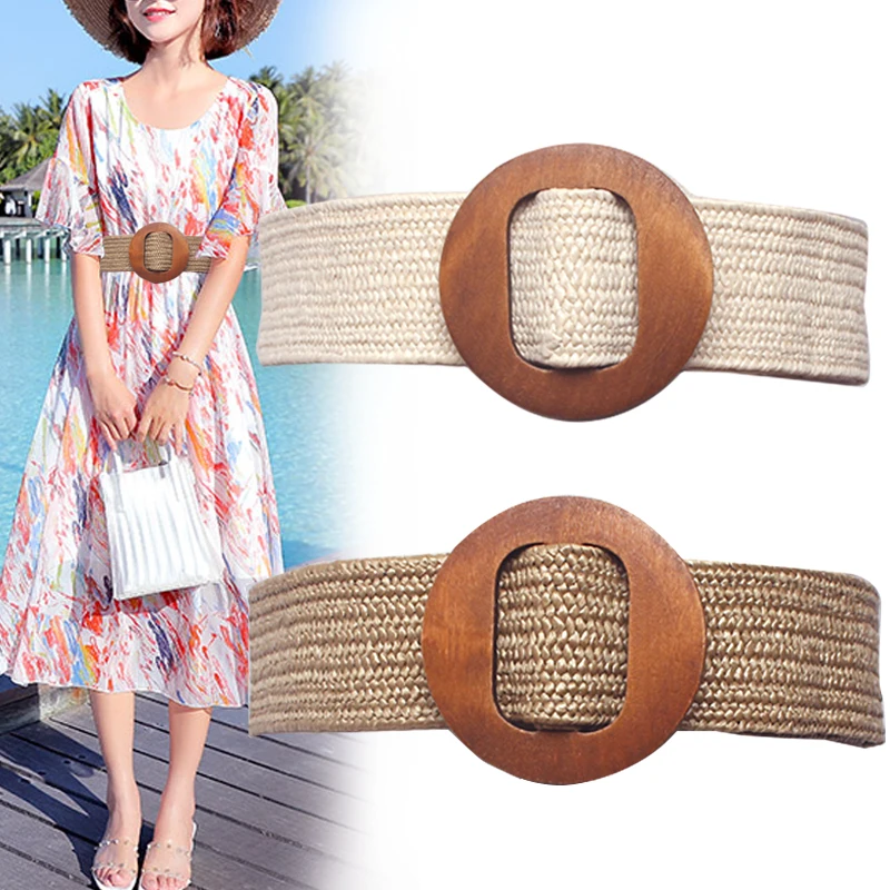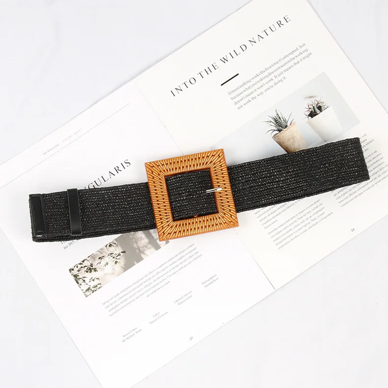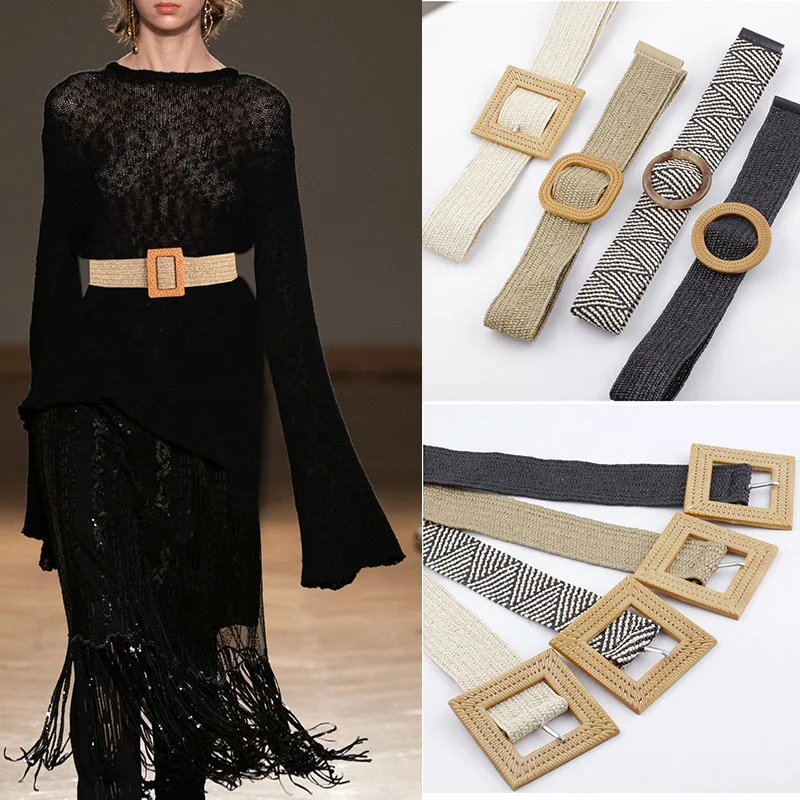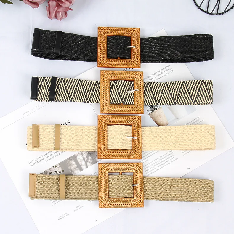 Ремень женский Плетеный Из искусственной соломы, в богемном стиле ретро, с круглой квадратной пряжкой из дерева и бамбука, аксессуар для лета, 38 видов