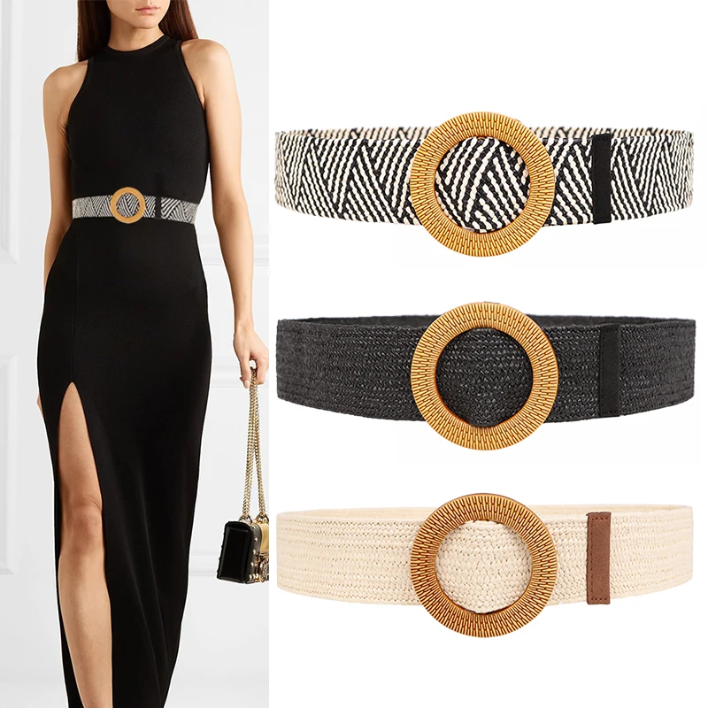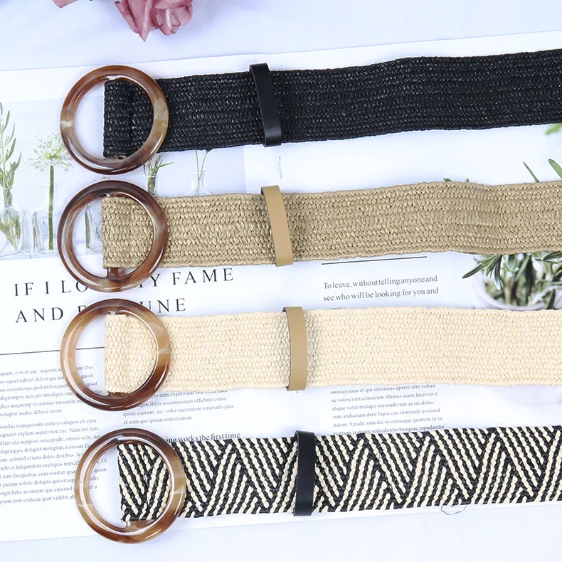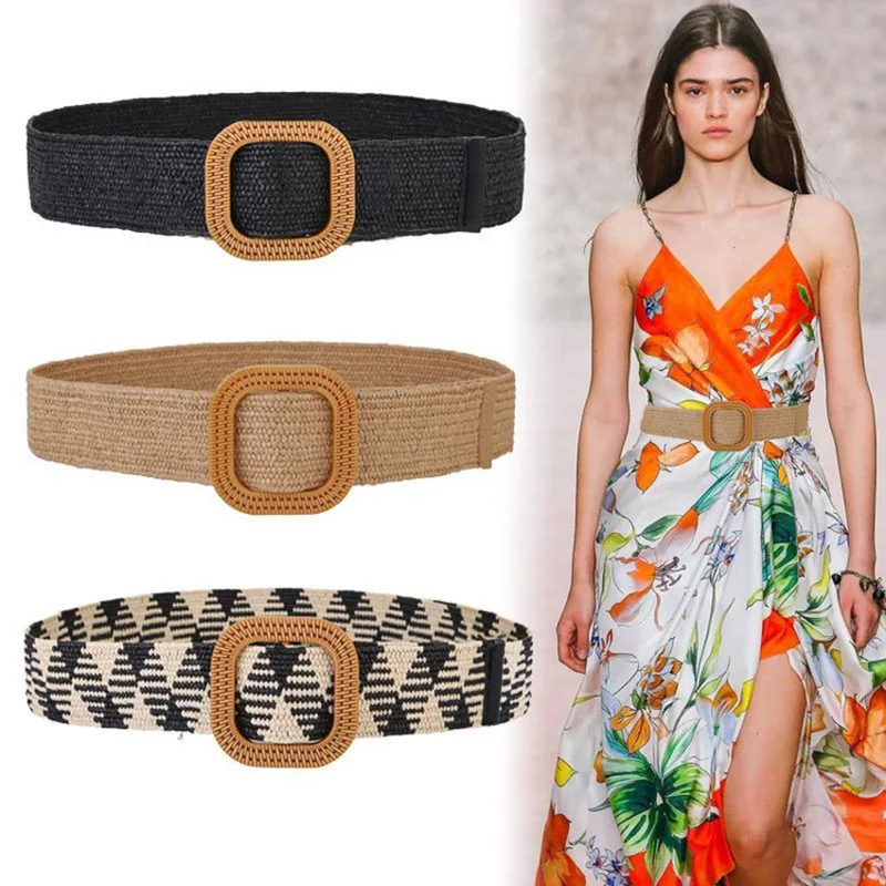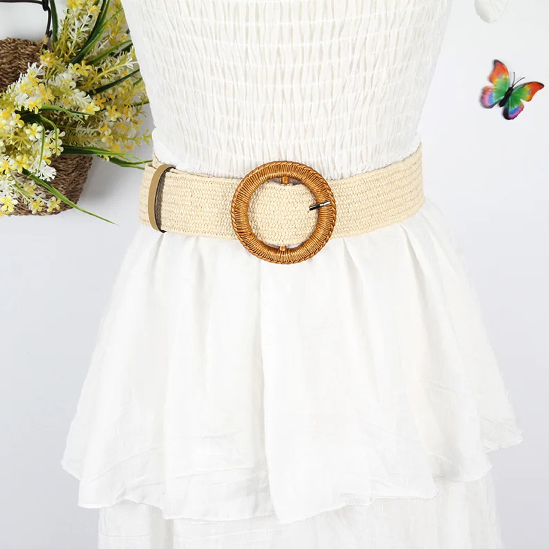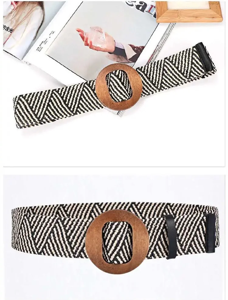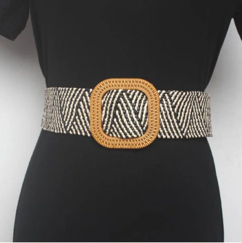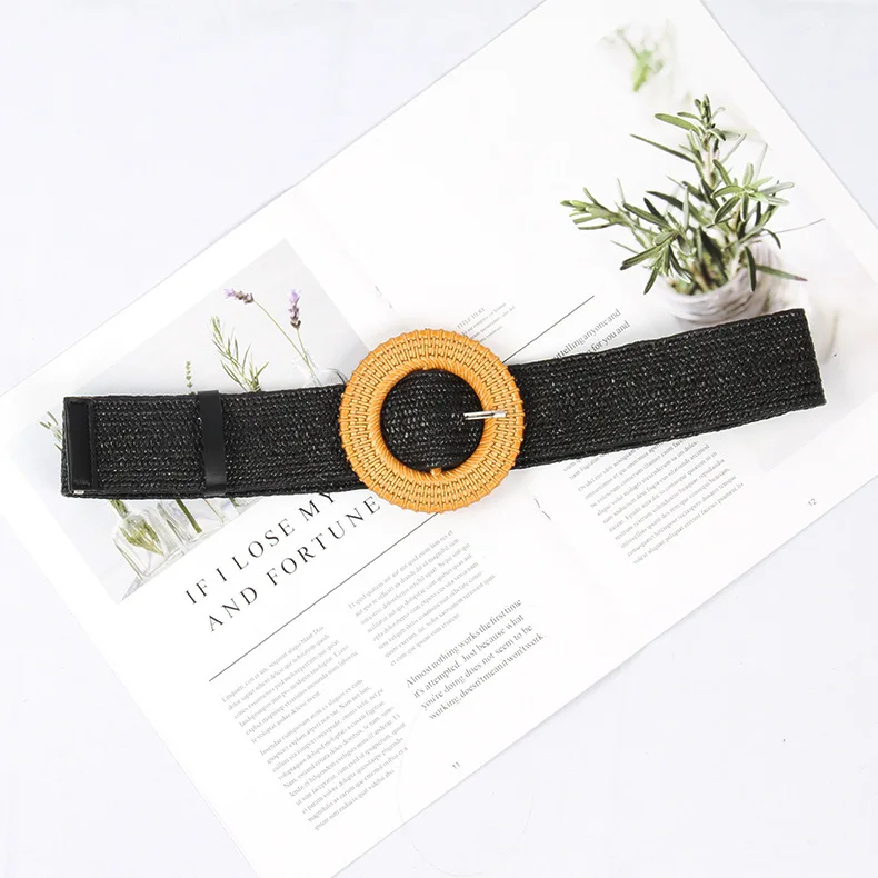 Ремень женский Плетеный Из искусственной соломы, в богемном стиле ретро, с круглой квадратной пряжкой из дерева и бамбука, аксессуар для лета, 38 видов