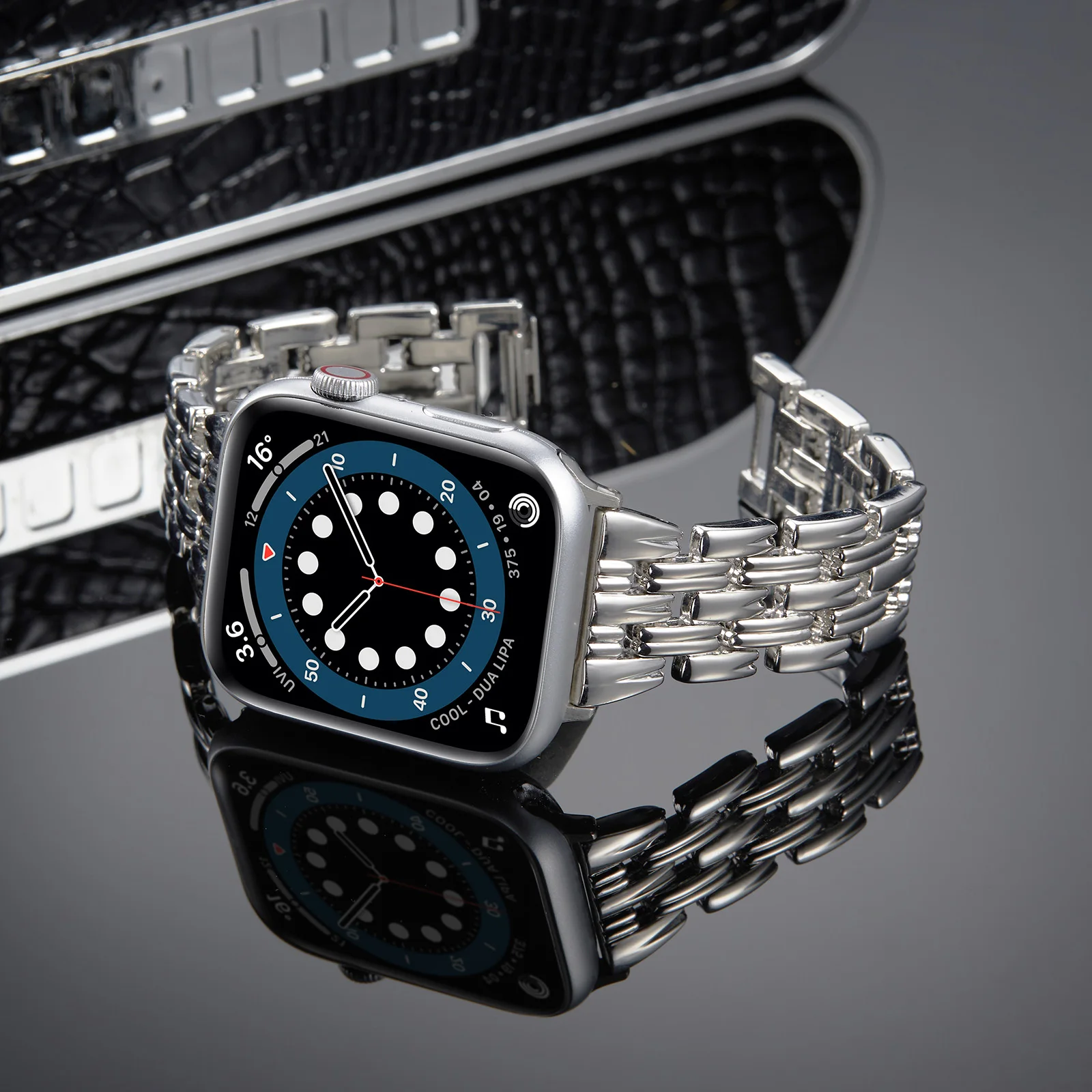 Металлический ремешок, совместимый с Apple watch 44 мм 42 мм 40 мм 38 мм, Женский сменный Браслет, стальной ремешок для iwatch 6 5 4 3 2 SE band