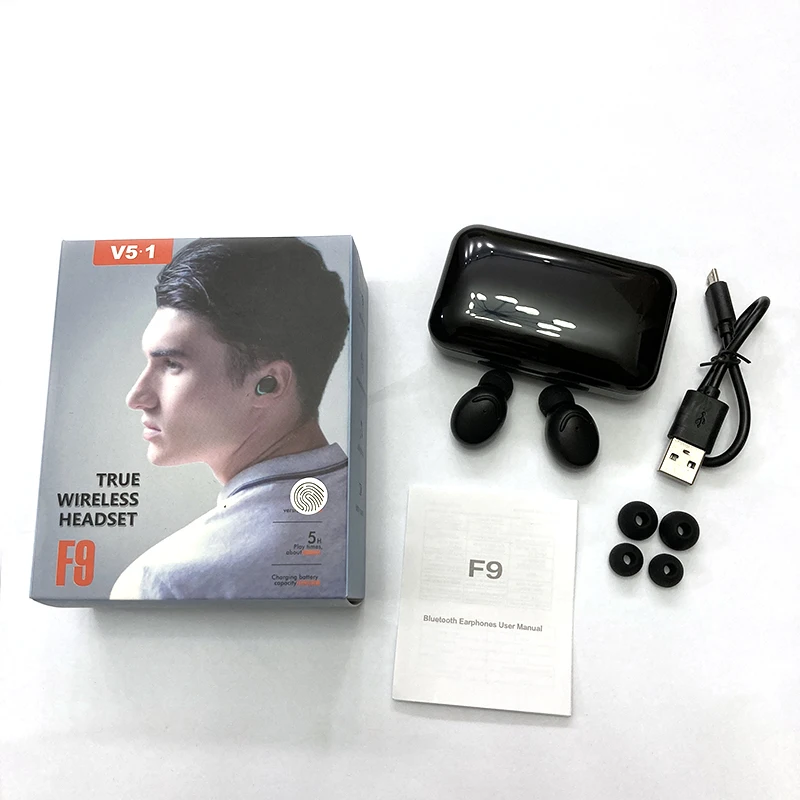F9-5 Tws беспроводные наушники 5,0 Bluetooth наушники спортивные водонепроницаемые стереонаушники-вкладыши сенсорная гарнитура портативная зарядная коробка