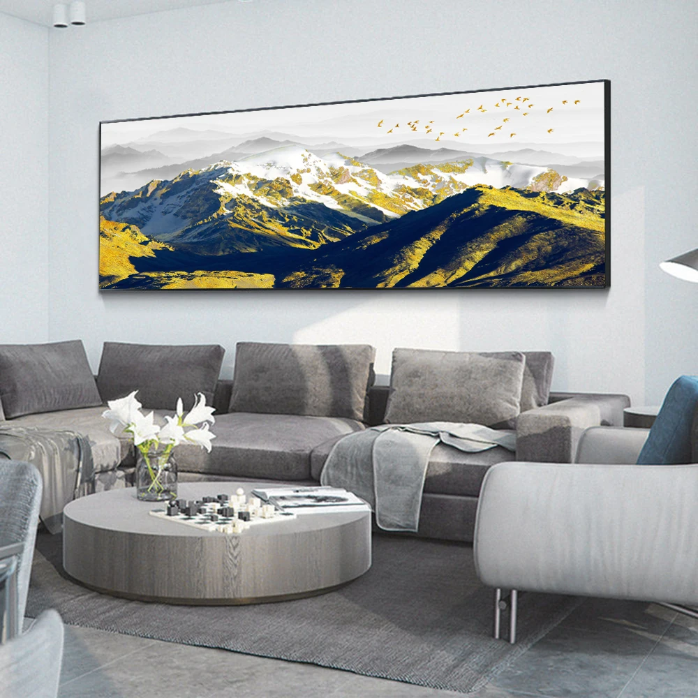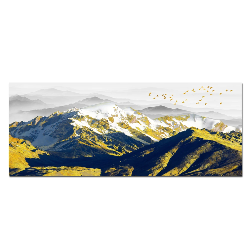 Современная Абстрактная пейзажная масляная живопись на холсте, плакаты и принты, настенное искусство, картина с золотыми горами для гостиной, Настенный декор