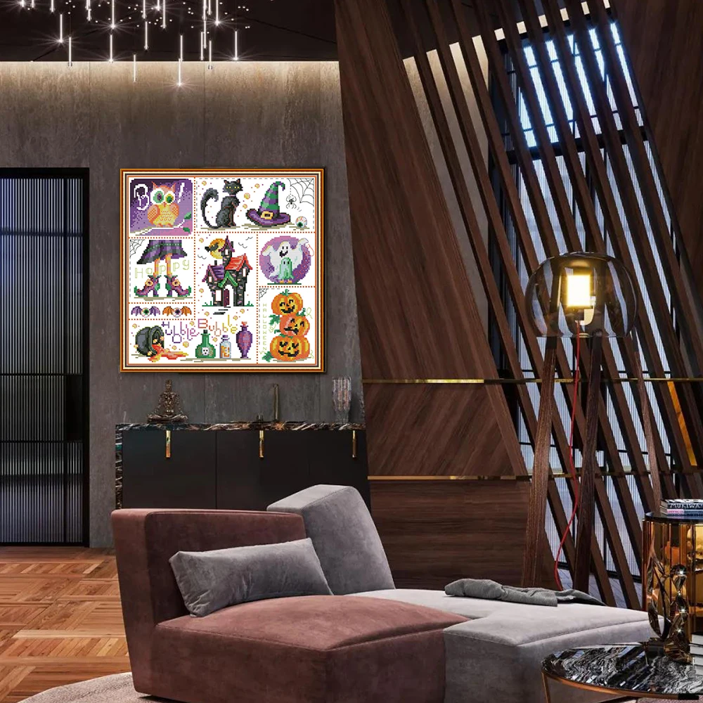 Joy Sunday, Хэллоуин, DA520, подсчитанный штампованный домашний декор, ведьма, тыква, Черный кот, Сова, вышивка, наборы для вышивки крестиком сделай сам