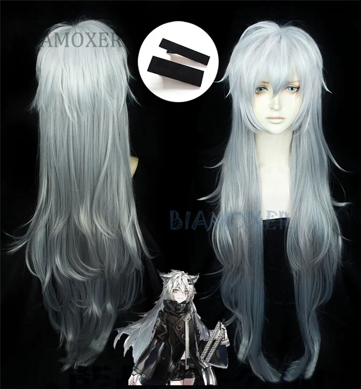 Парики для косплея Lappland, высокотемпературные синтетические волосы из серебристых и белых волос с градиентом, Длинные головные уборы
