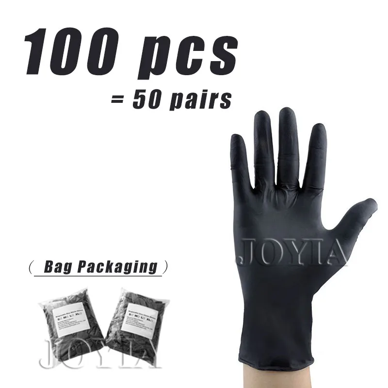 100 шт. одноразовые перчатки, черные защитные виниловые нитриловые перчатки для домашней работы и садоводства, без латекса, XS S M L