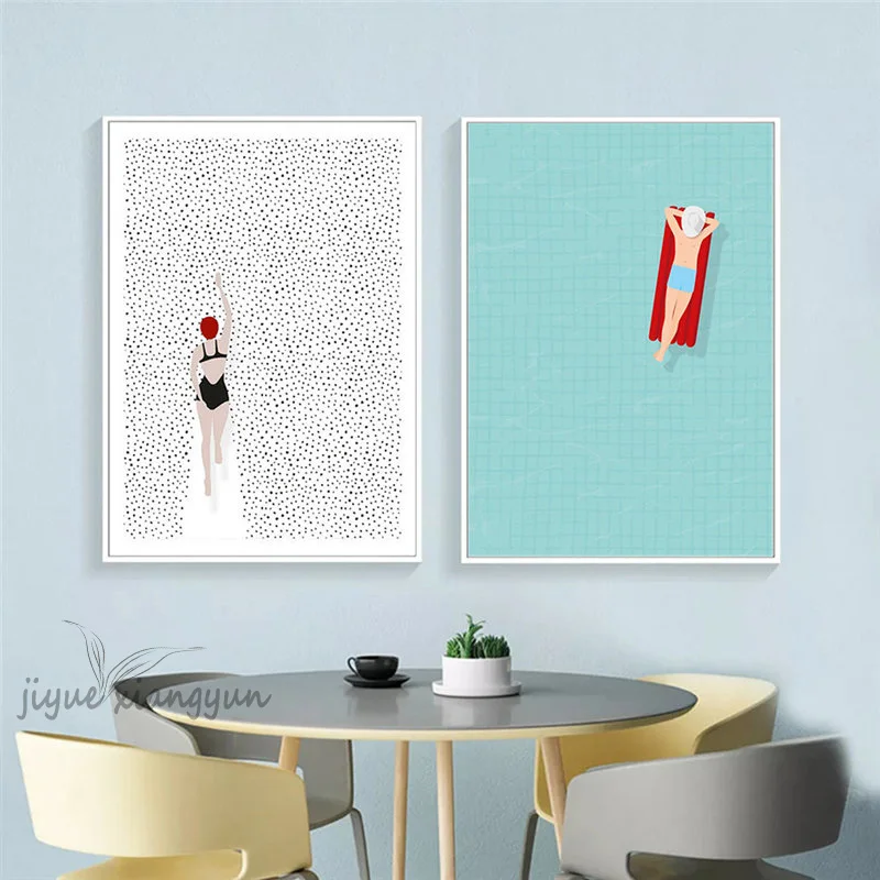 Летняя абстрактная картина на стену, Постер в скандинавском стиле для аэрофотосъемки бассейна, живопись на холсте, декор для гостиной